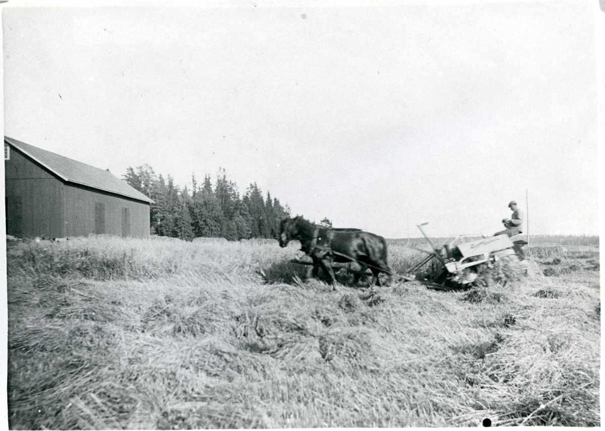 Anders Olsgården. Petrus Andersson på självbindaren, 1917.