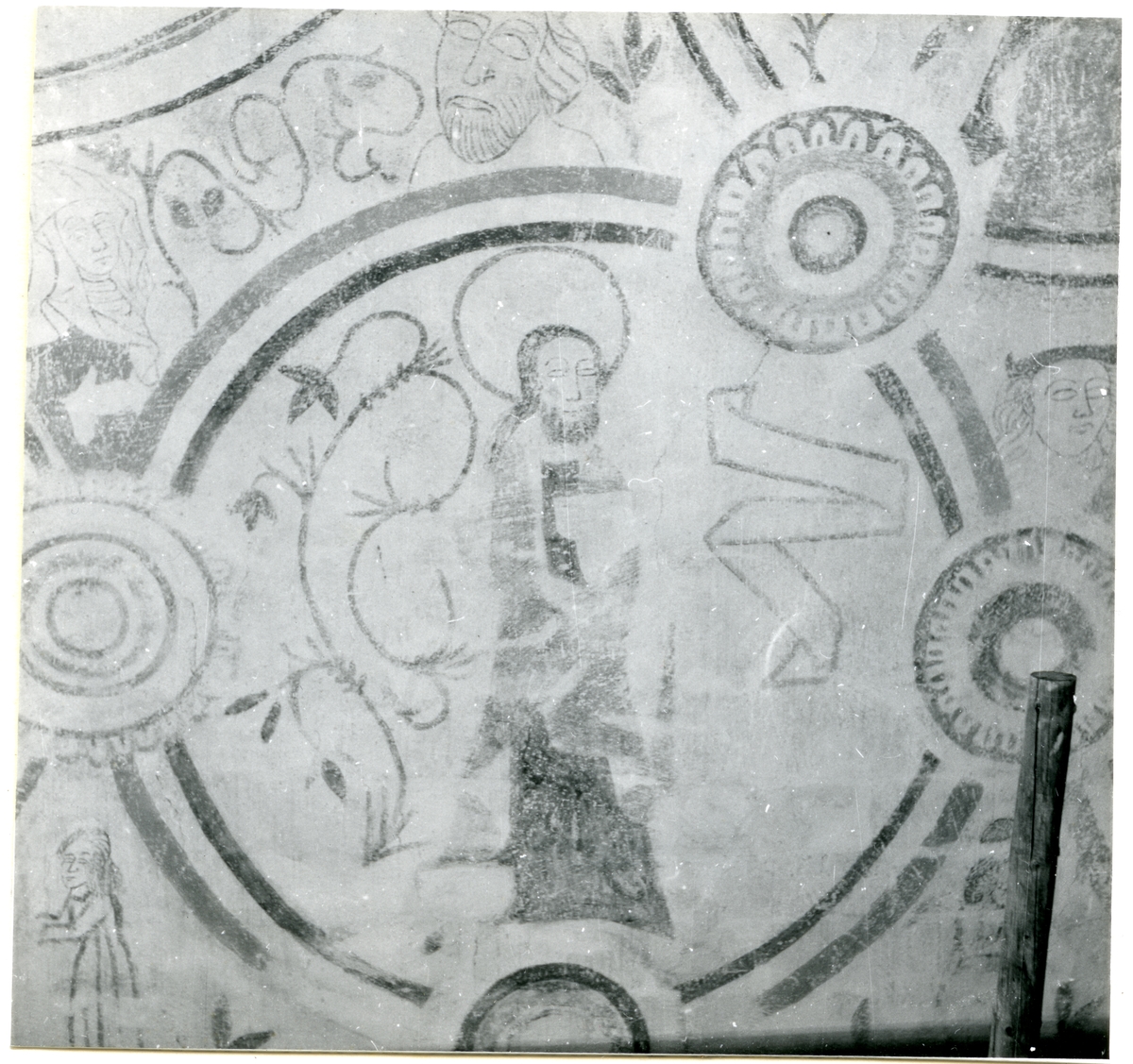 Odensvi kyrka. Väggmålning i sidokapellets (nuvarande sakristians) valv. Apostel.
