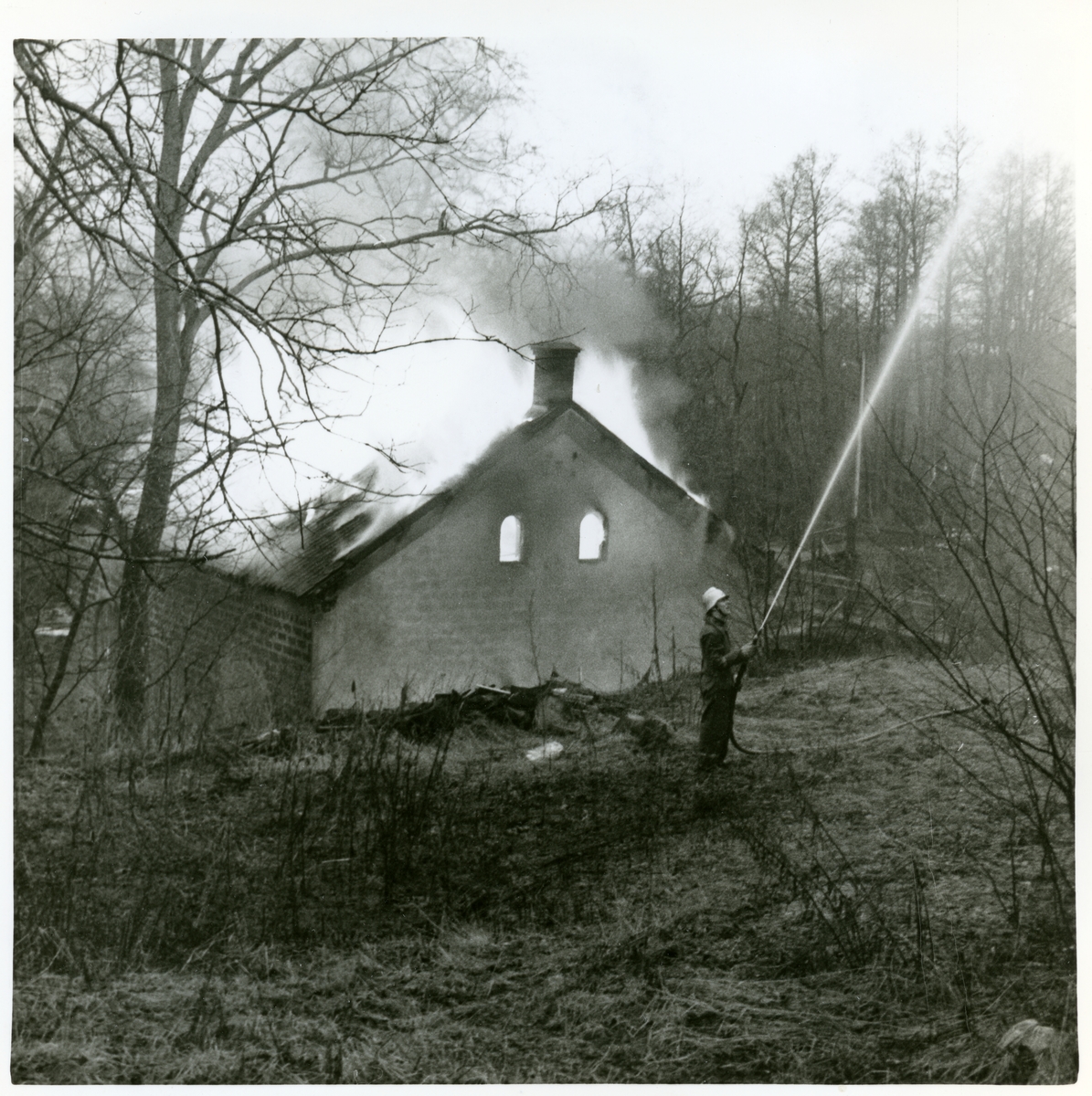 Brinnande badhus i Ramnäs (f.d. kraftstation). 1971.