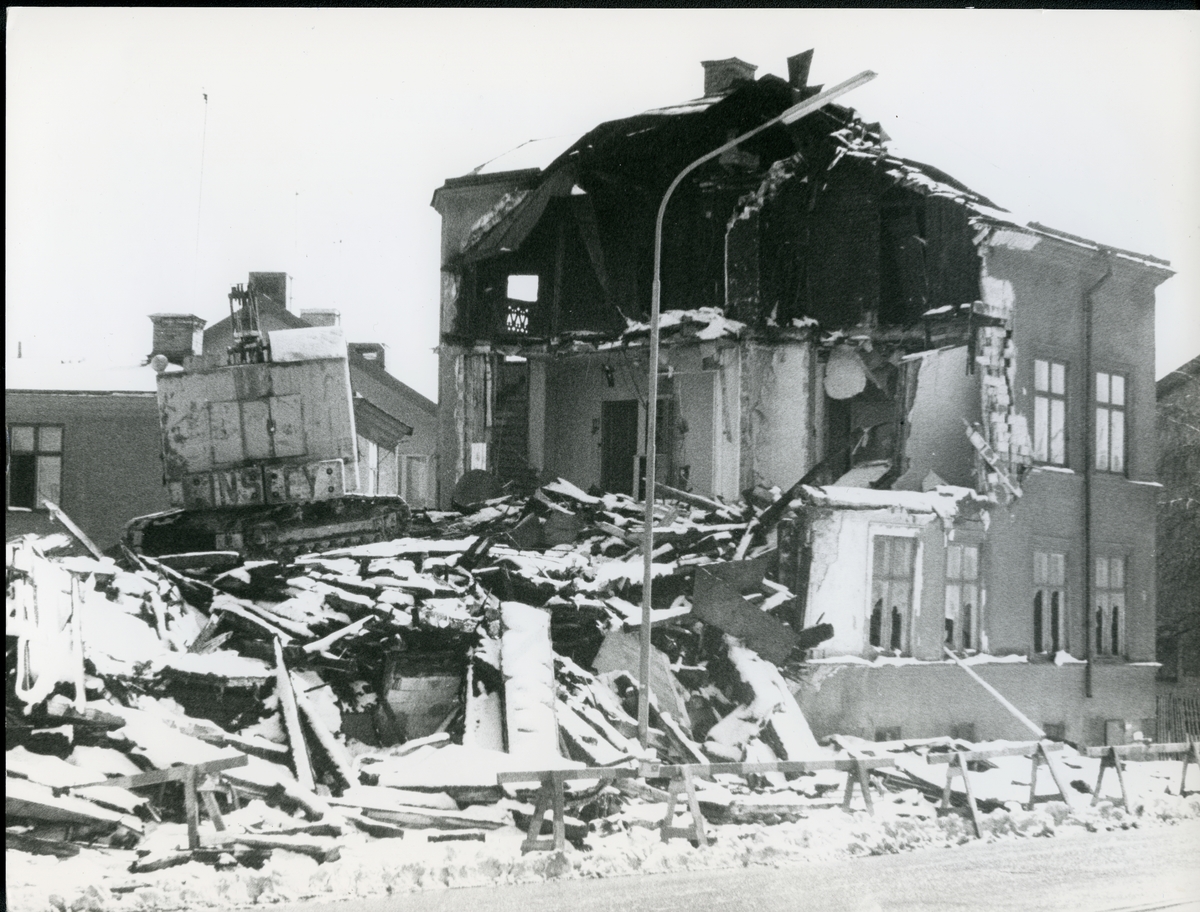 Rivning av byggnad i hörnet Malmabergsgatan-Lokegatan.