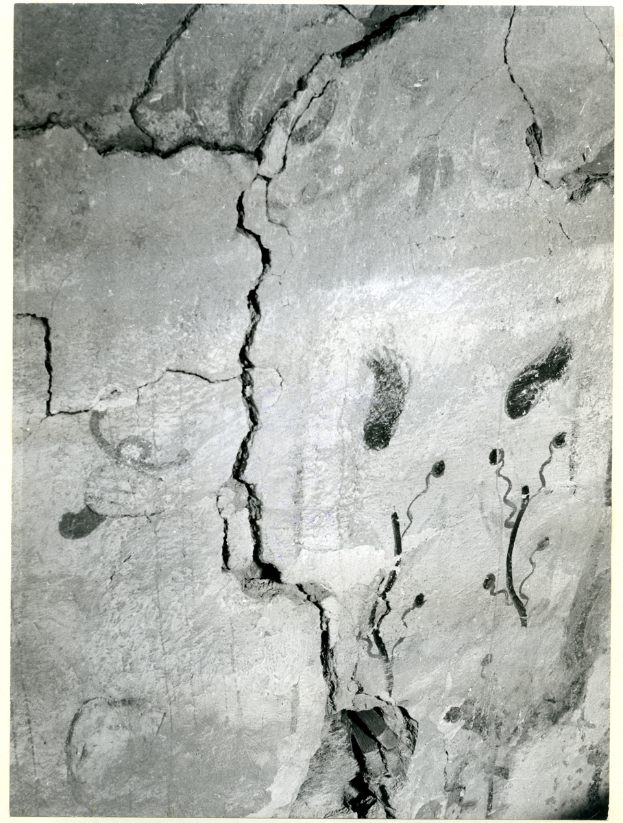 Fragment av medeltida väggmålningar i Tillberga kyrka, 1954.