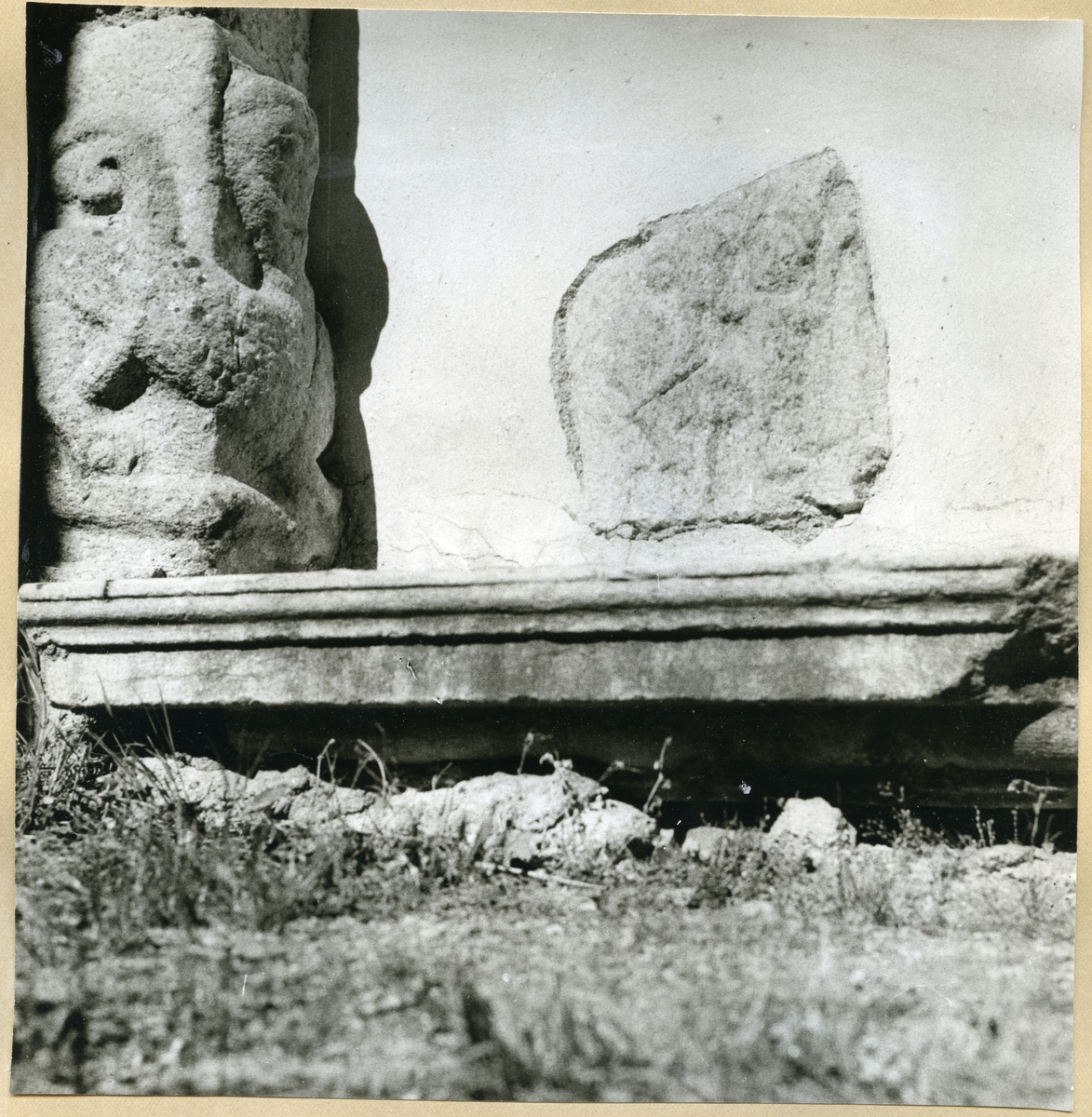 Skulpterad figur och altardisk på Torpa kyrka, 1959.