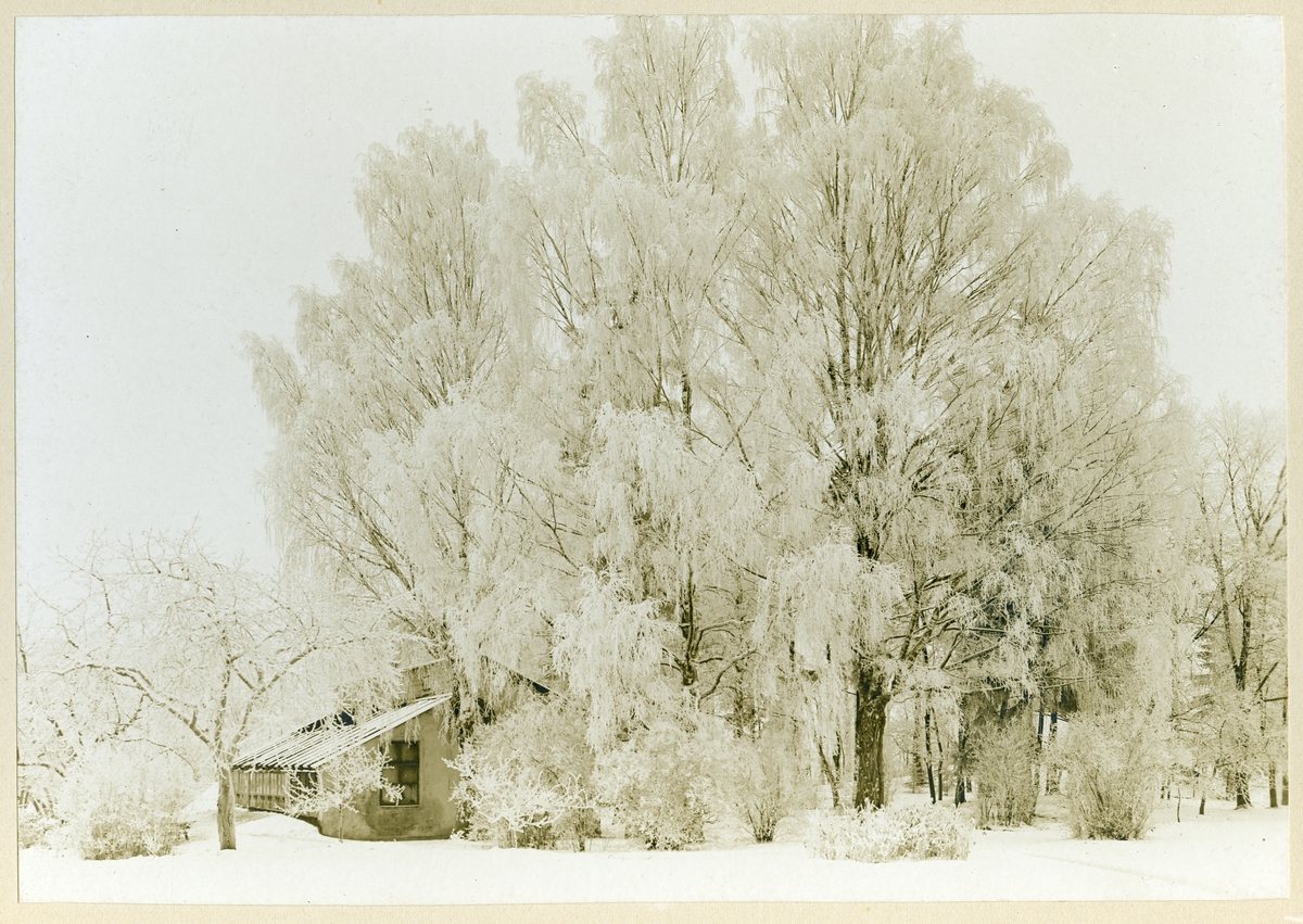 Kanalen vid Surahammars herrgård. Vintermotiv med byggnad.