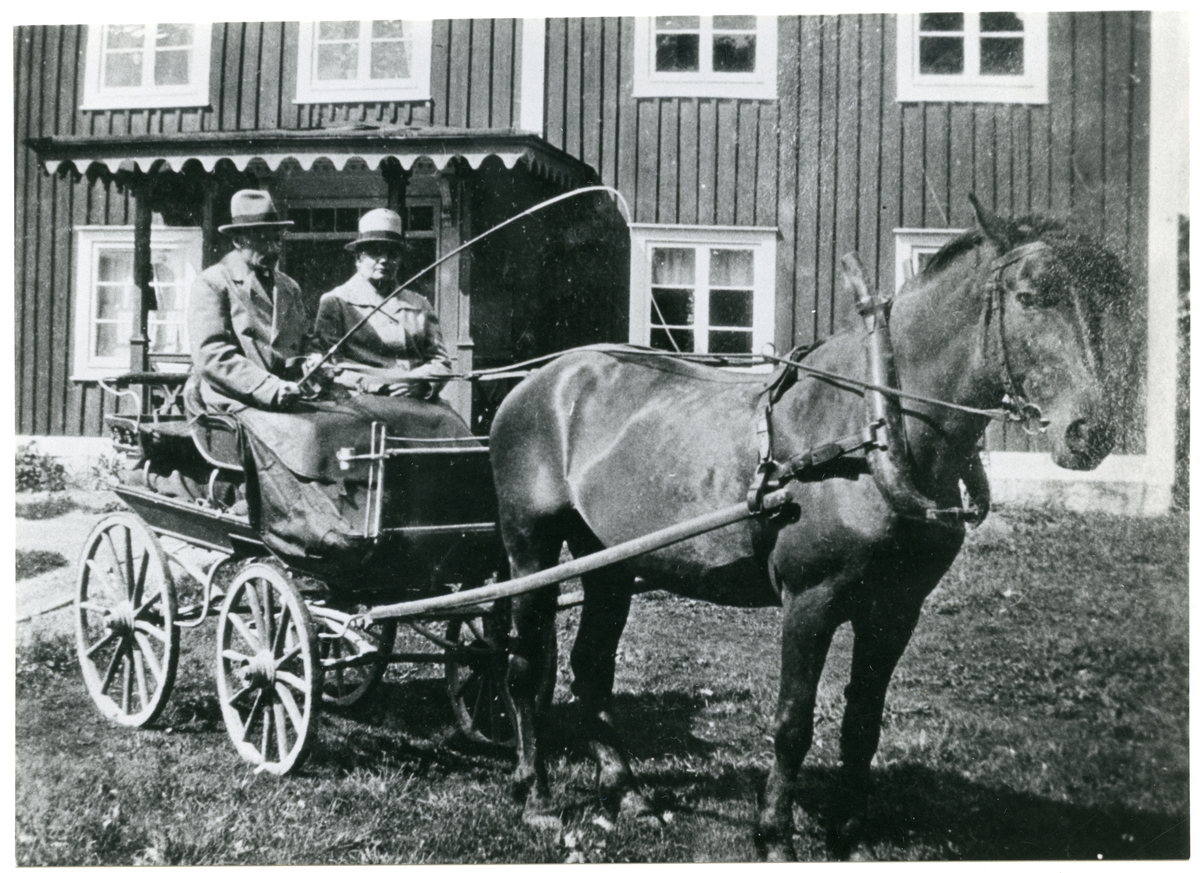 Nils och Maria Eriksson i hästvagn, slutet av 1920-talet.