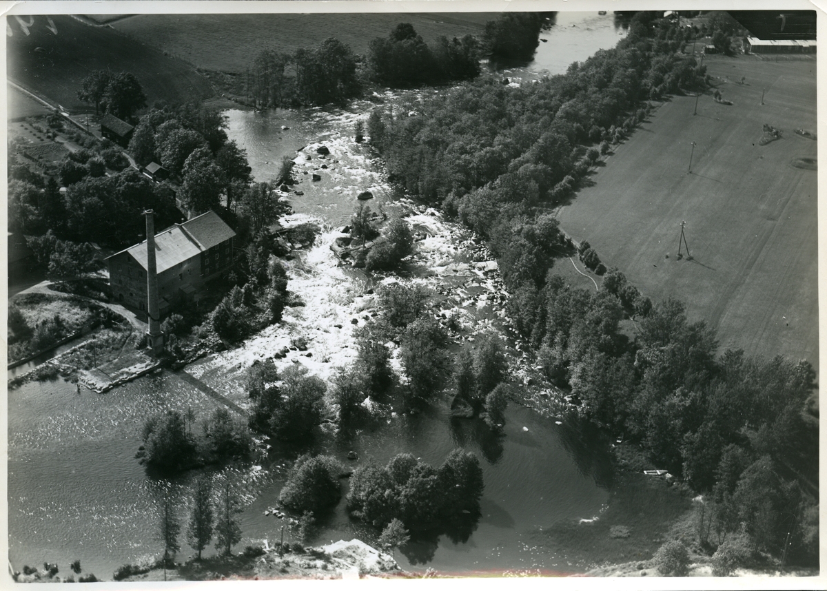 Flygfoto över Kolbäcksån, Hallstahammar.