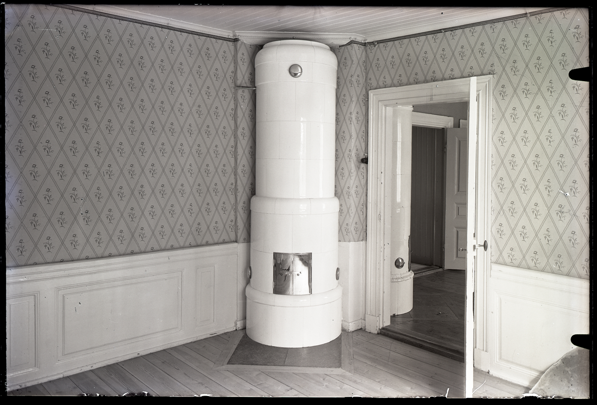 Kakelugn i rum på Väsby Kungsgård, Sala.