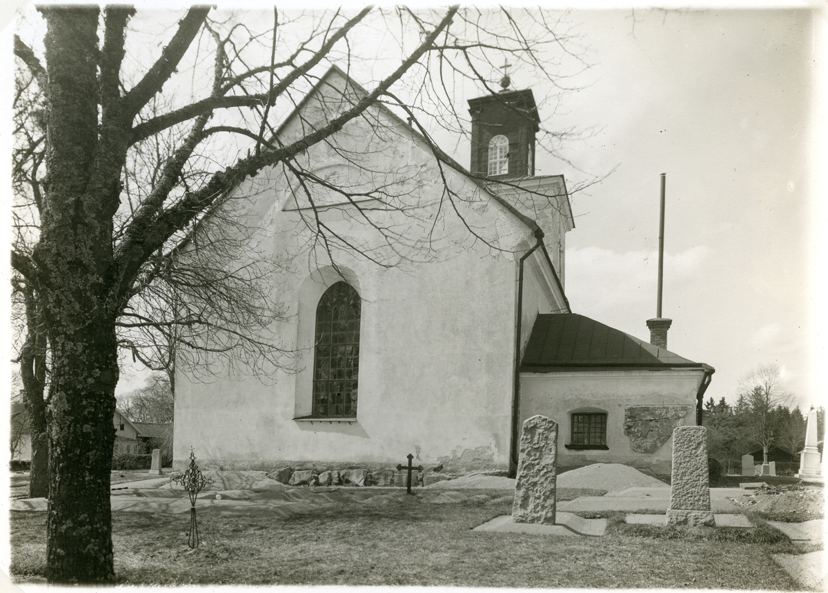 Exteriör av Tortuna kyrka, korgaveln. 1942.