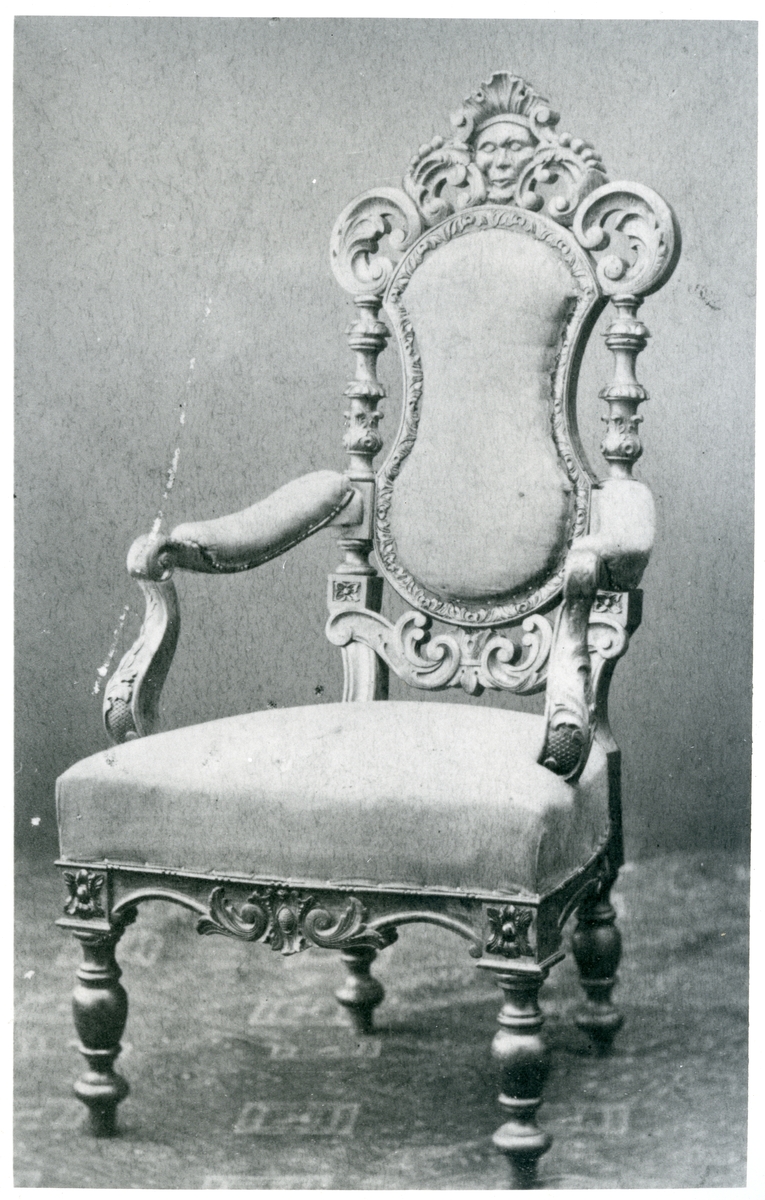 Karmstol tillverkad av möbelsnickare G. W. Larsson i Brunnsbo, Tärna sn.