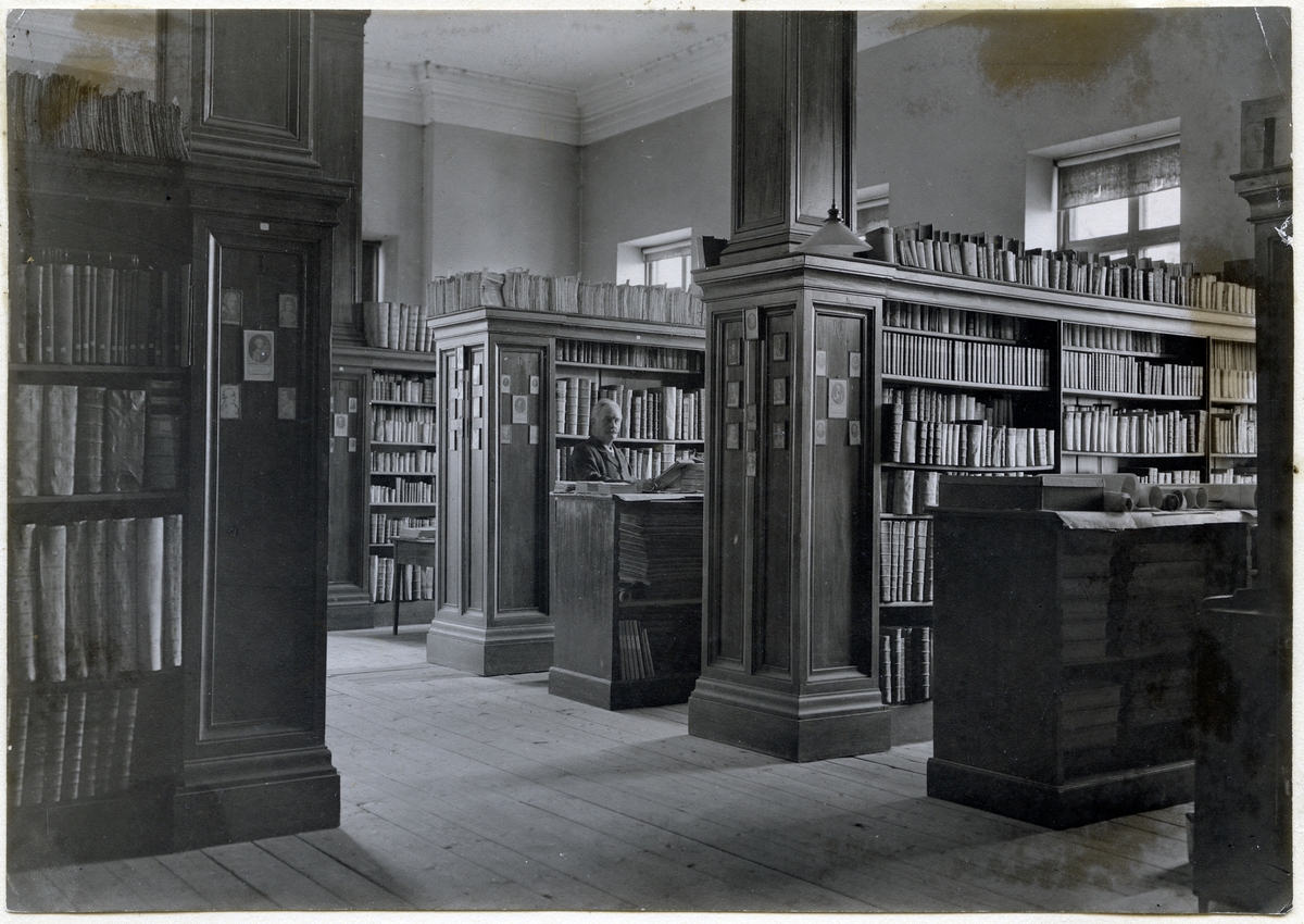 Biblioteket tillhörande Högre Allmänna Läroverket. Interiör.