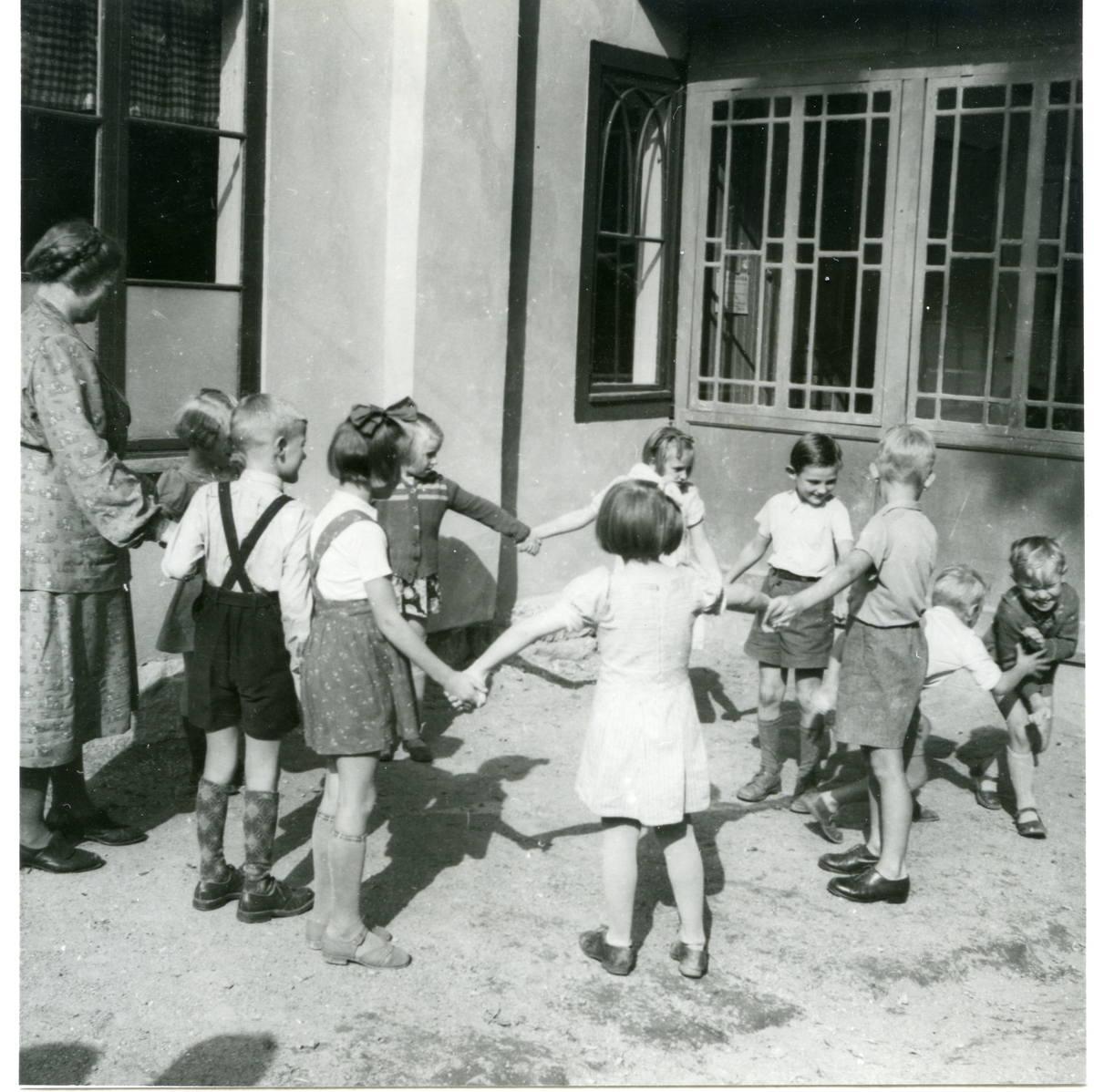 Ringlek vid Hwasserska skolan, Glasgatan 2. 1946.