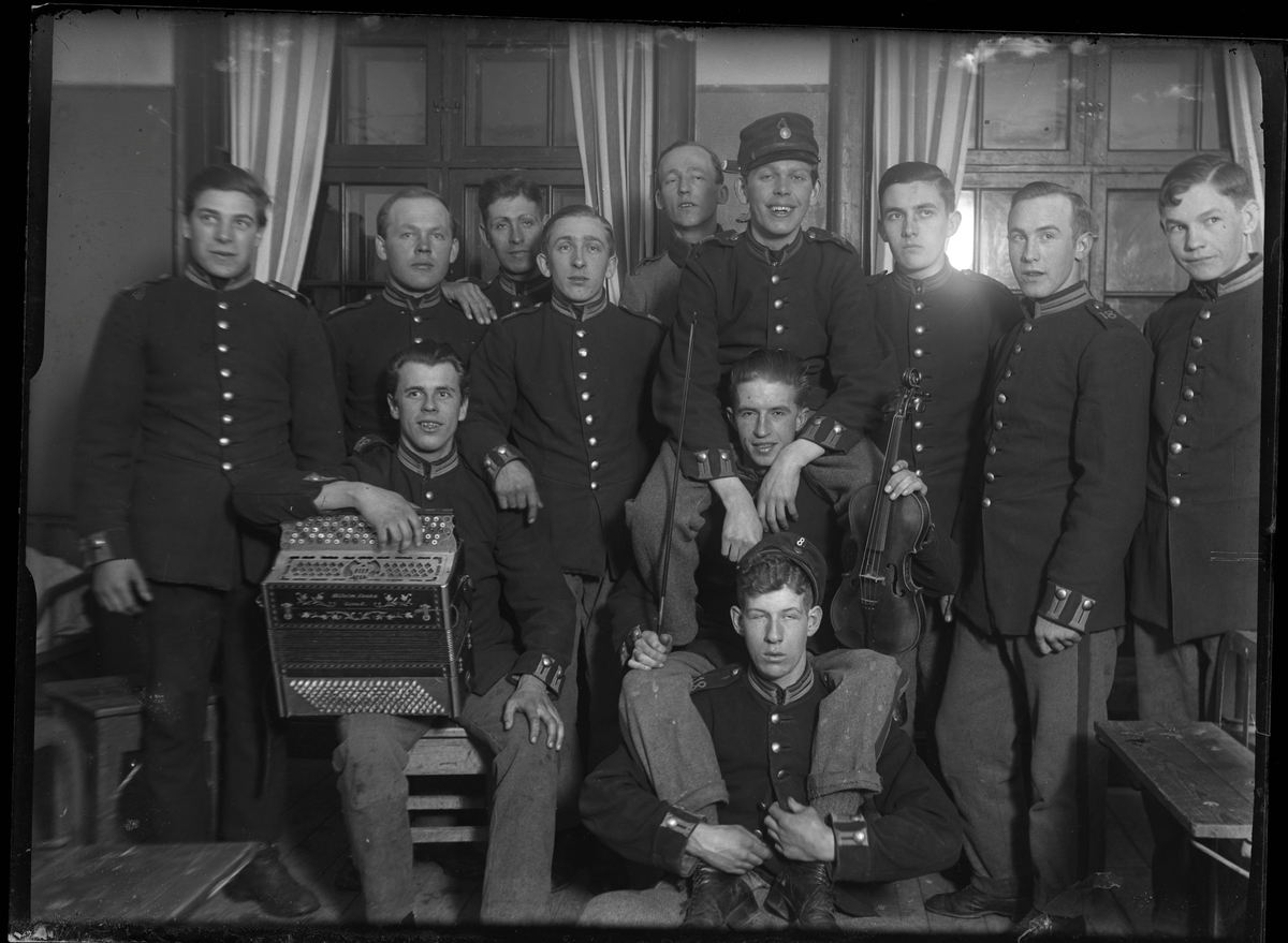 Titel: Grupporträtt av soldater, I 18, Västerås.