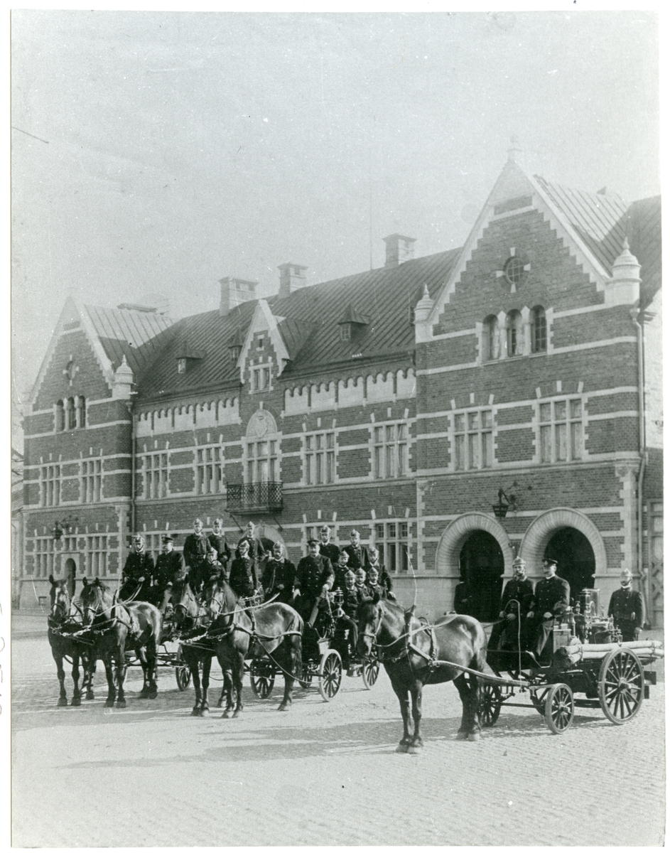 Brandkåren, mönstring framför Polis/brandkårens hus.
