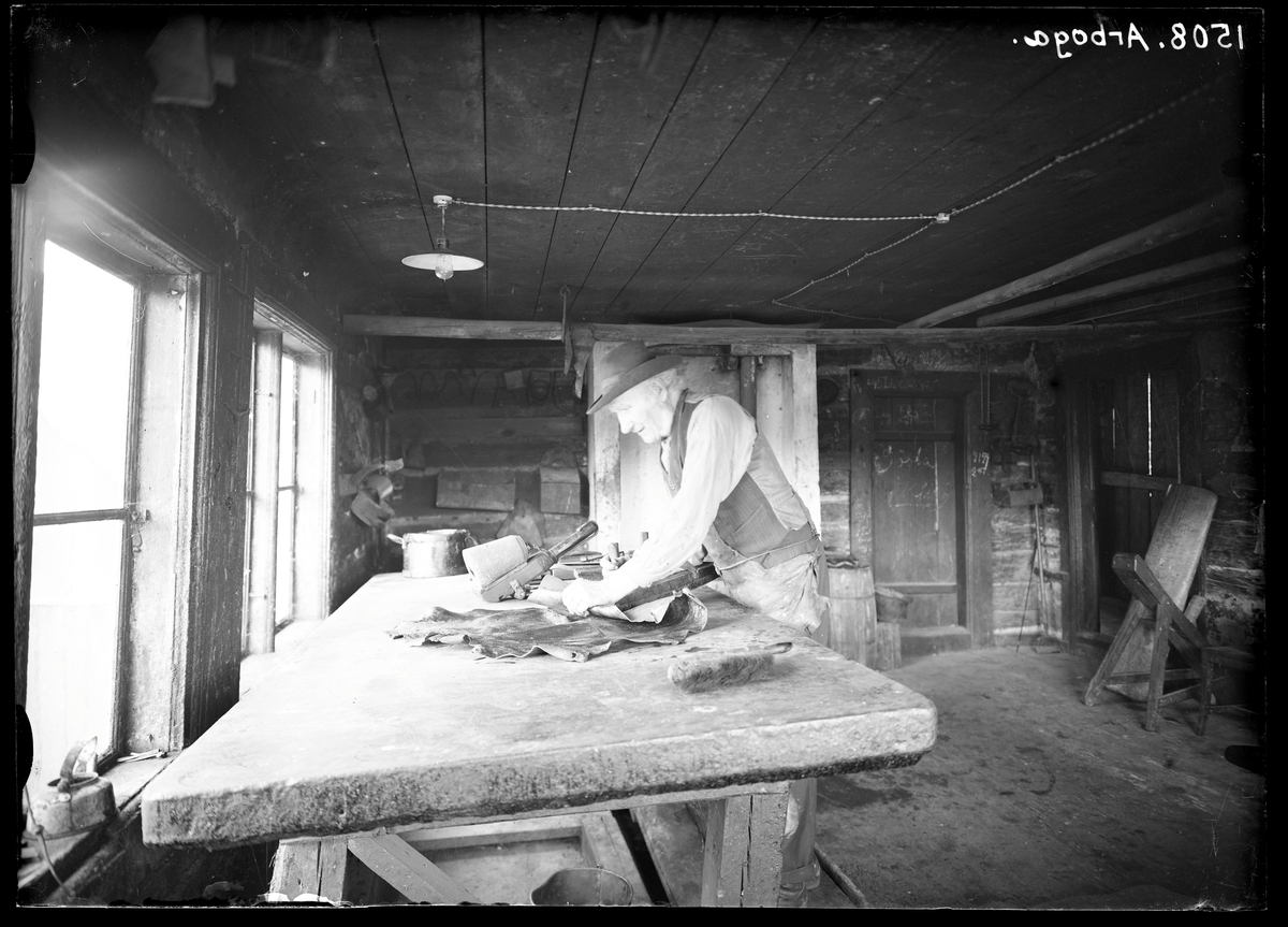 Huden krusas på Nils Gunnarssons garveri på Karbacken, Arboga.