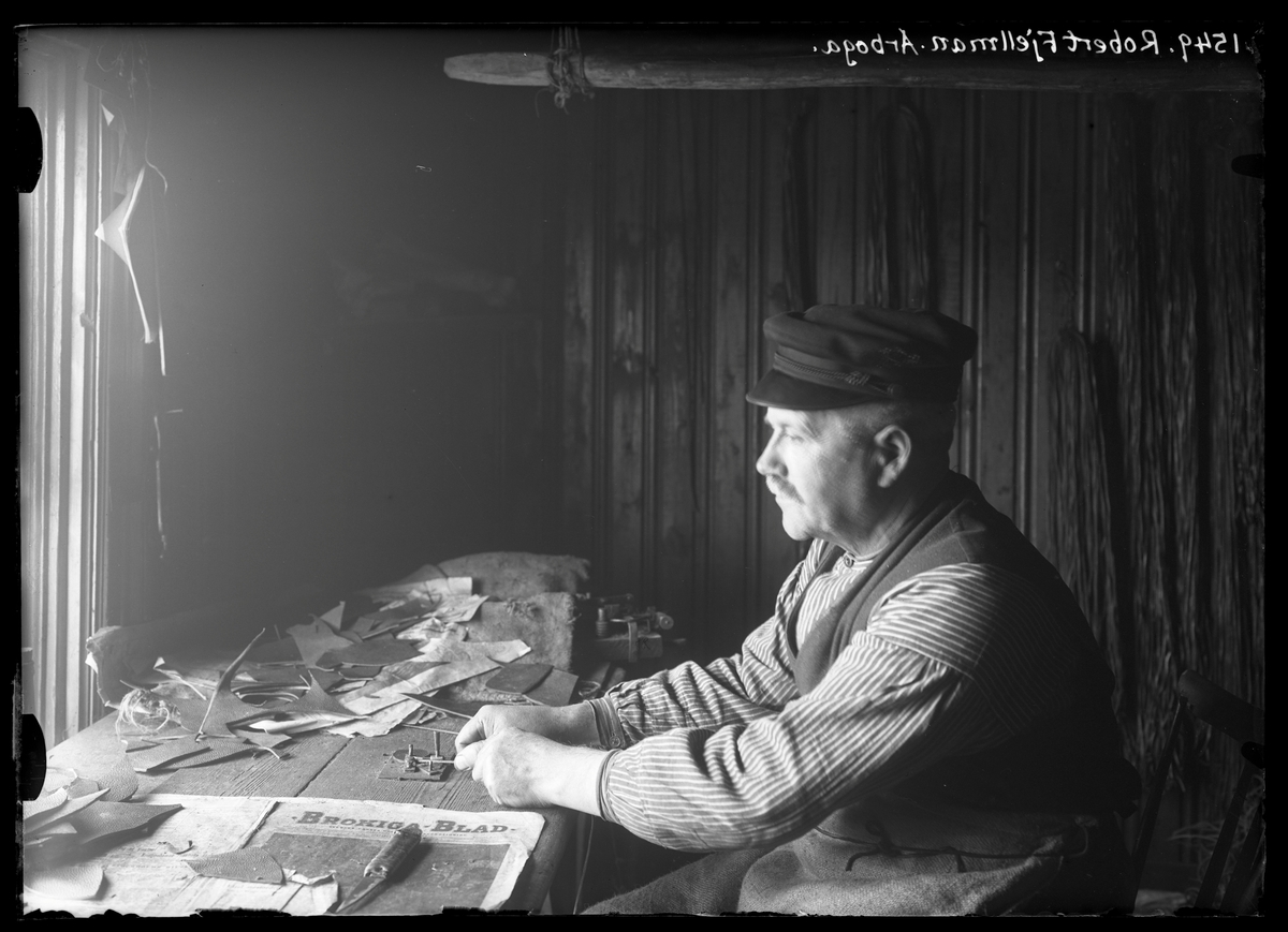 Robert Fjellman gör skoremmar i Arboga.