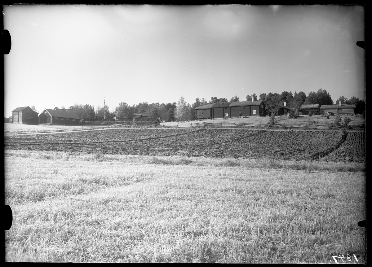 Titel: Vallby friluftsmuseum, nerifrån åkern vid Svartån, Västerås.