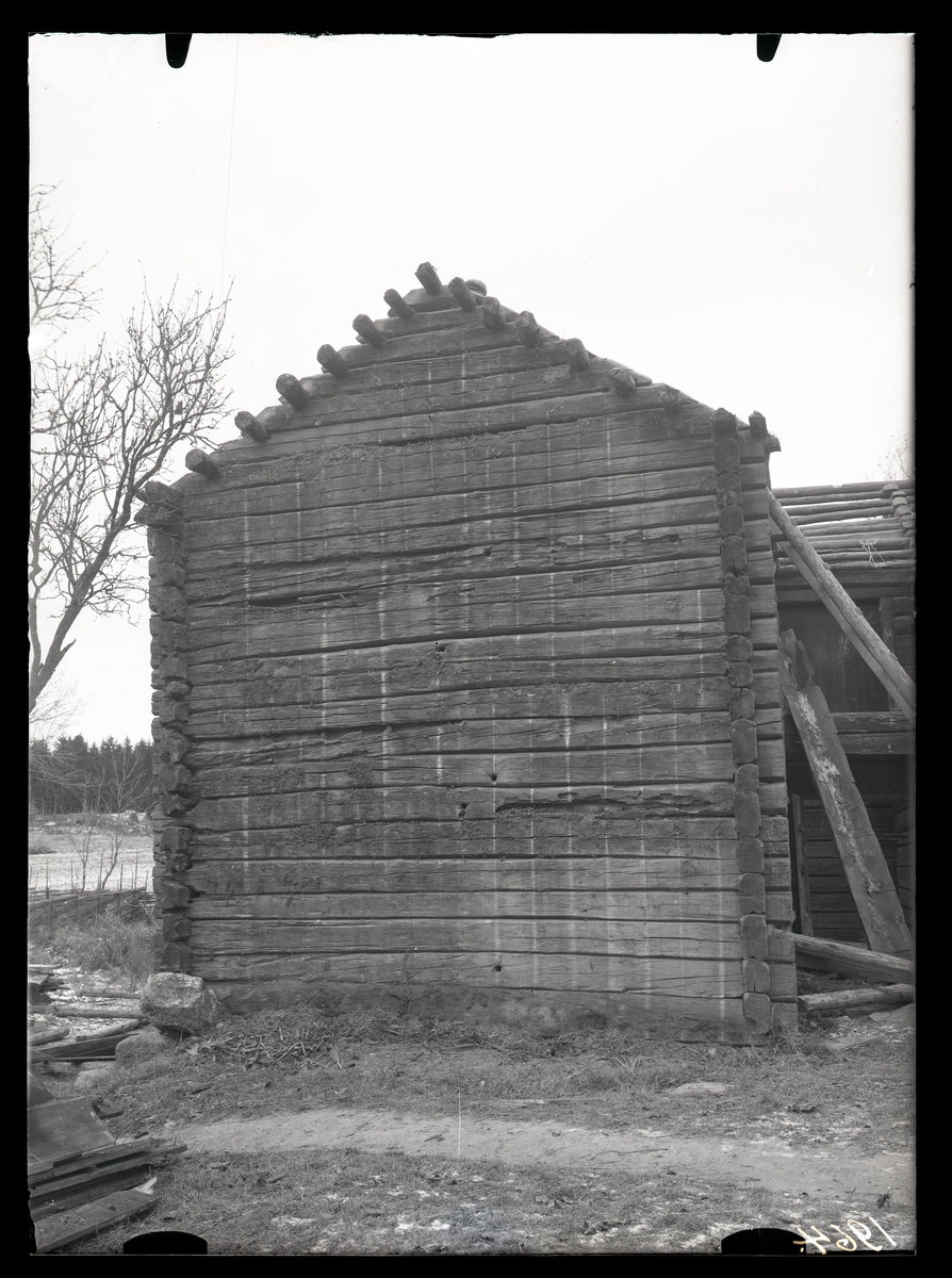 Loftbod under rivning, östra gaveln, Norrsylta, Munktorp.