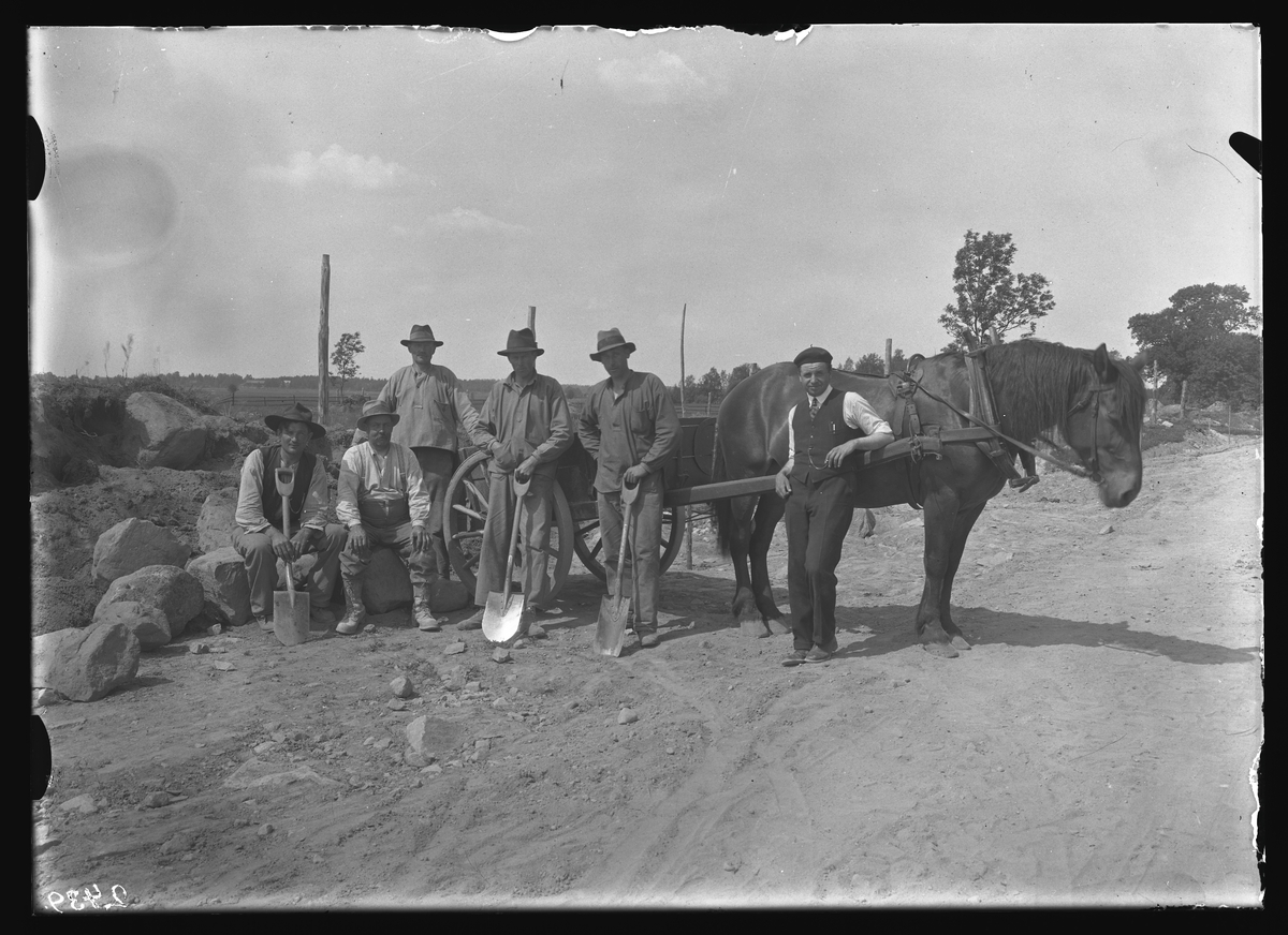 Skadade forngravar, arbetare vid väganläggning i Valsta.