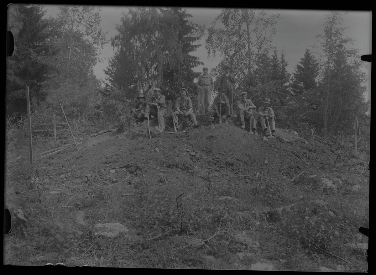 Fornlämning nr 28, från väster med arbetslaget, vid Gottsta.