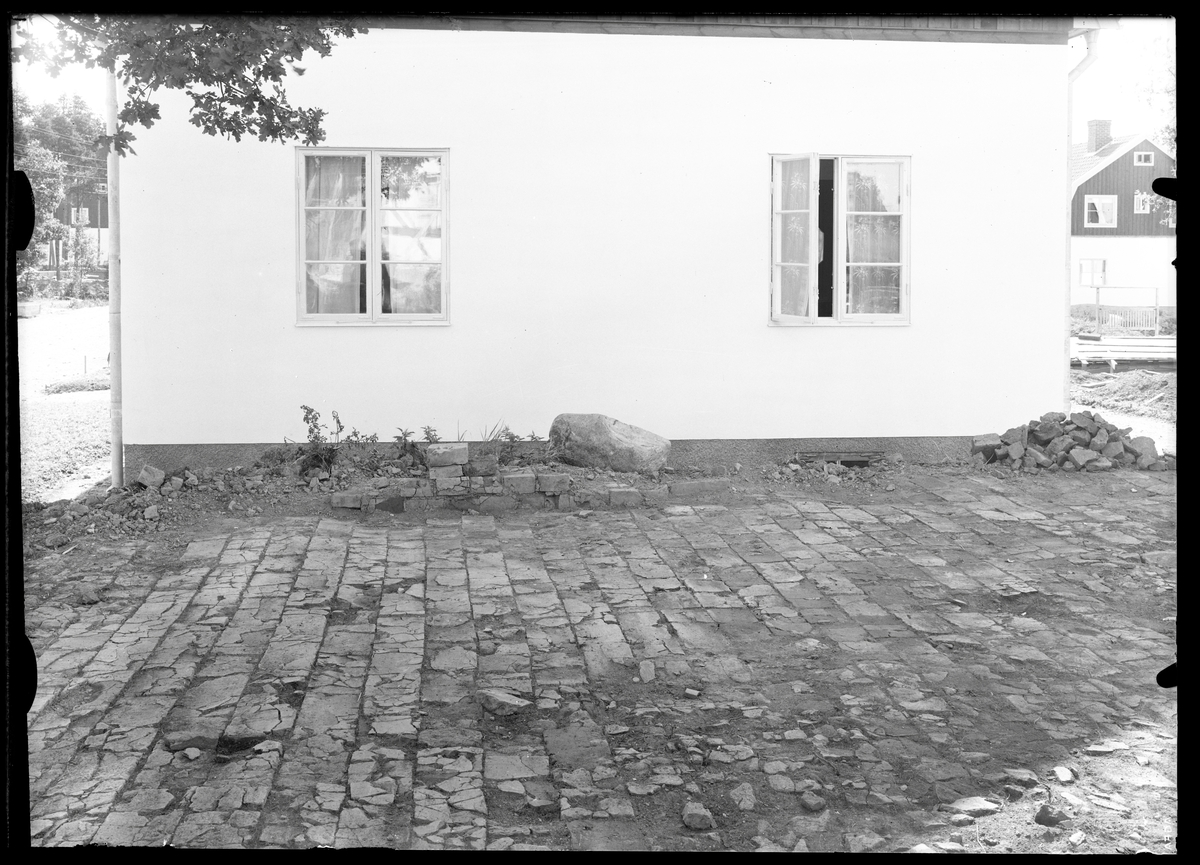 Tegelgolv funnet vid schaktningsarbete på tomten i storlek