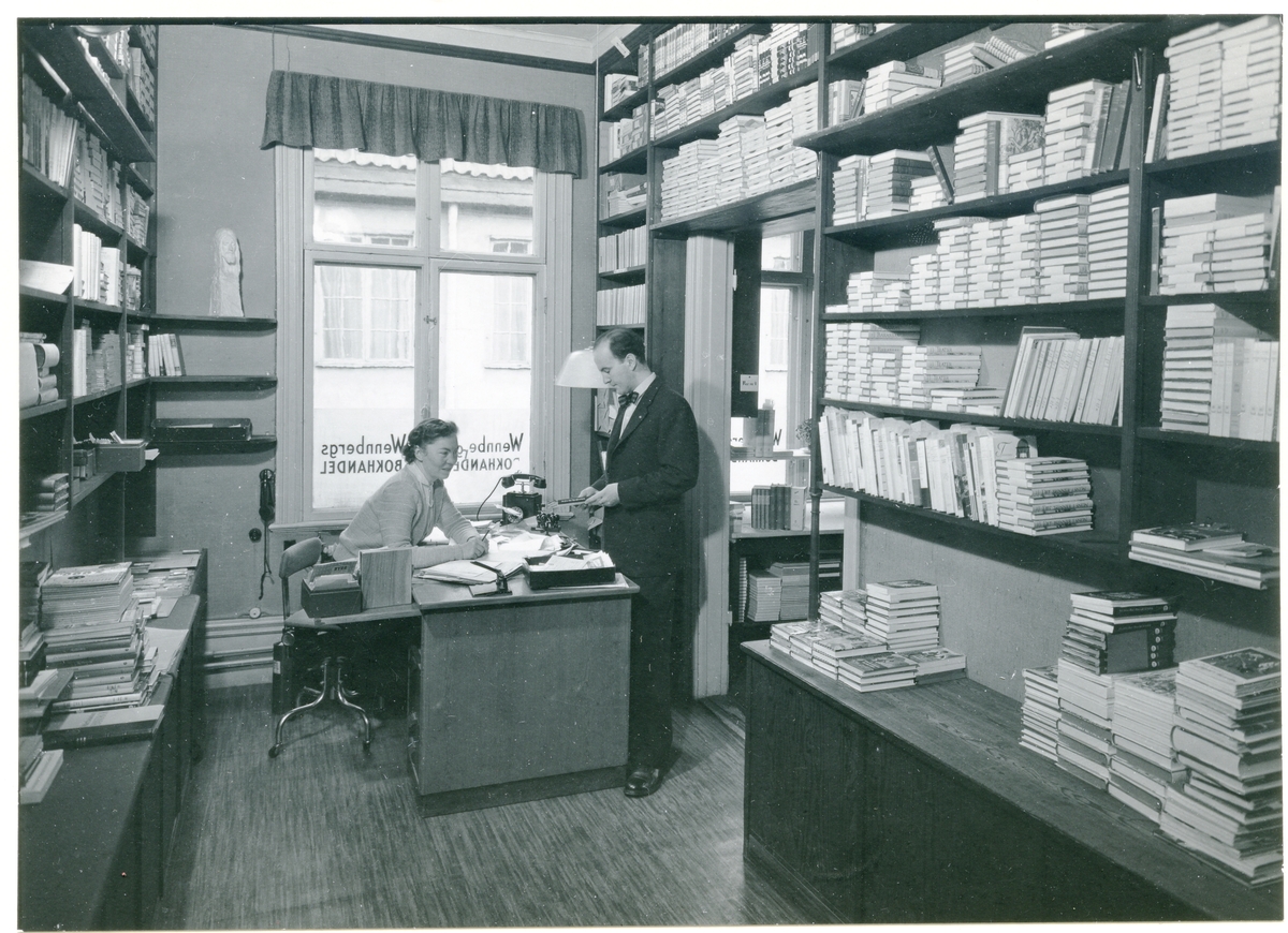 Interiör från Wennbergs bokhandel. C:a 1940-1950-tal.