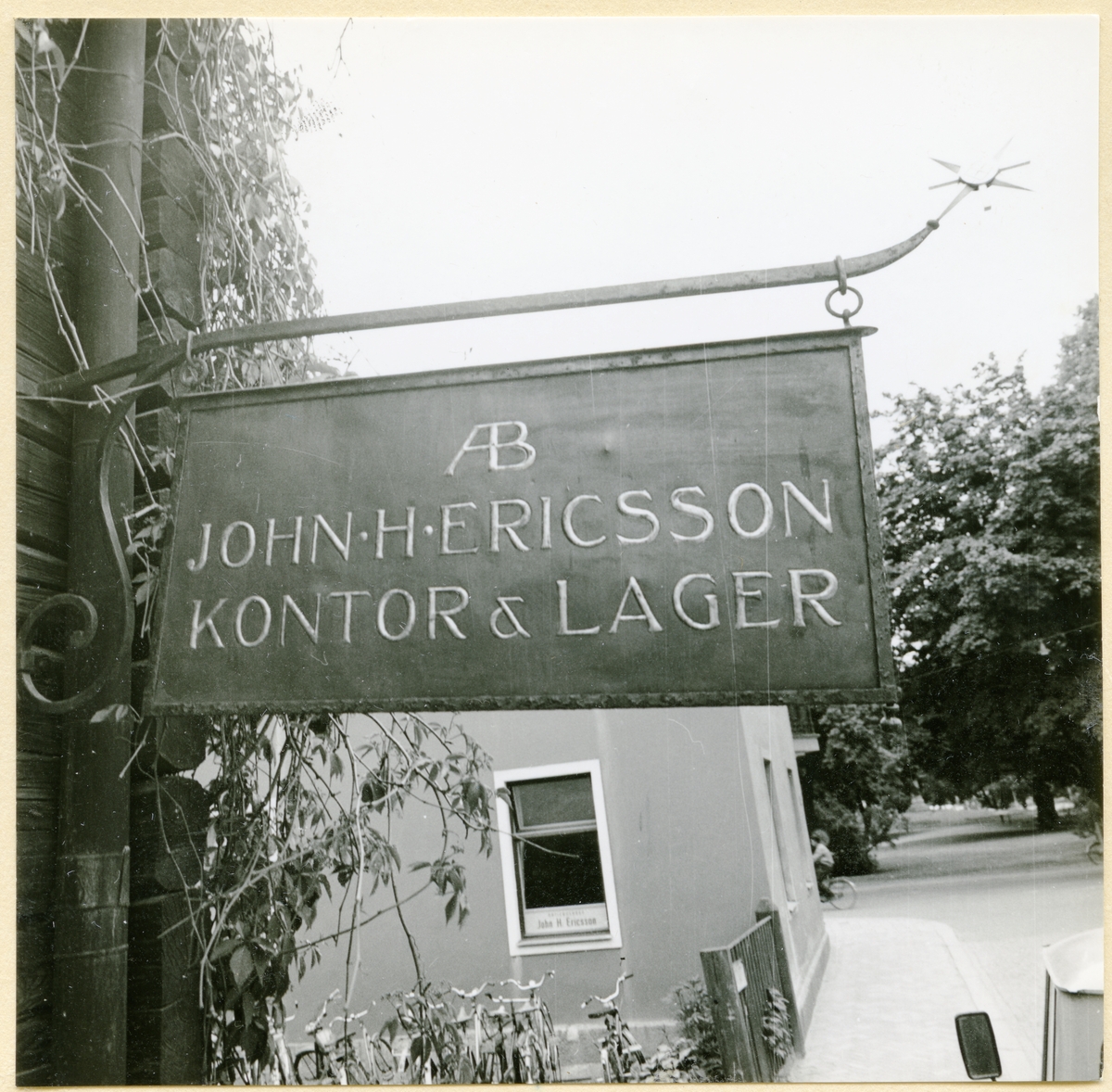 Skylt med texten "AB John H Ericsson Kontor & Lager".