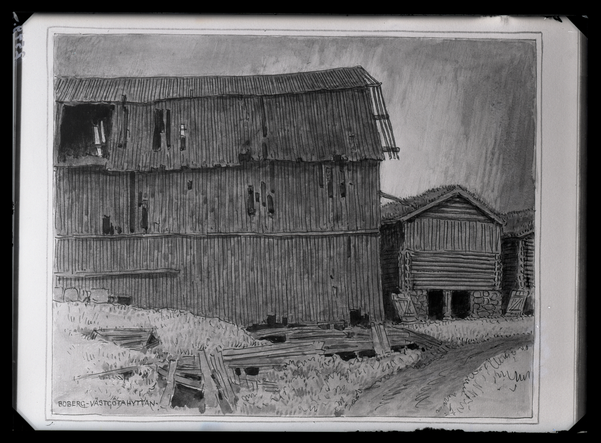 Akvarell av Ferdinand Boberg. Kolhus, Västgötahyttan.