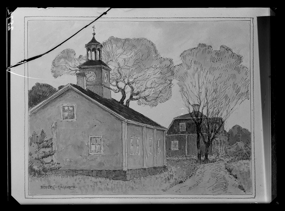 Akvarell av Ferdinand Boberg. Gamla kontoret, Västanfors, Fagersta.