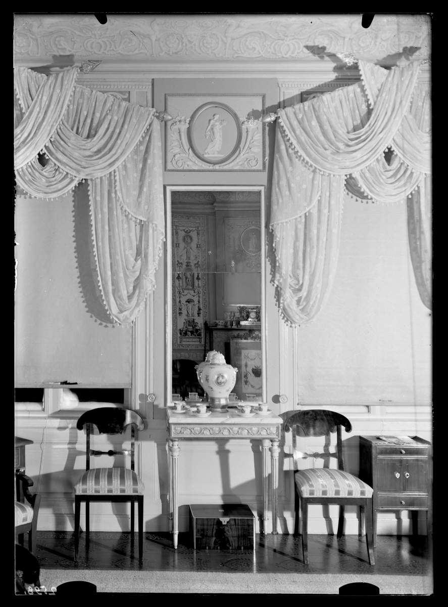 Parti av fönsterväggen i salongen, Hed, Bernshammar.