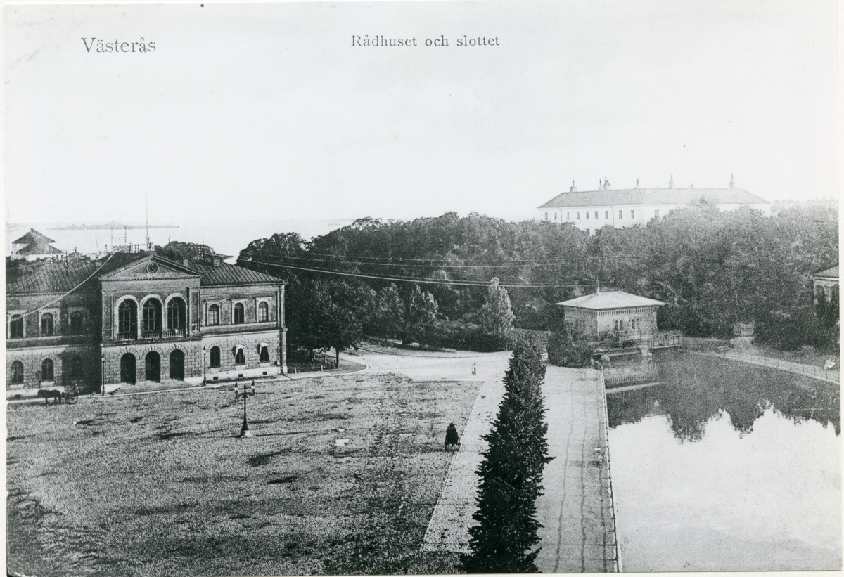 Fiskartorget med Rådhuset och Turbinhuset. Med Slottet i bakgrunden.