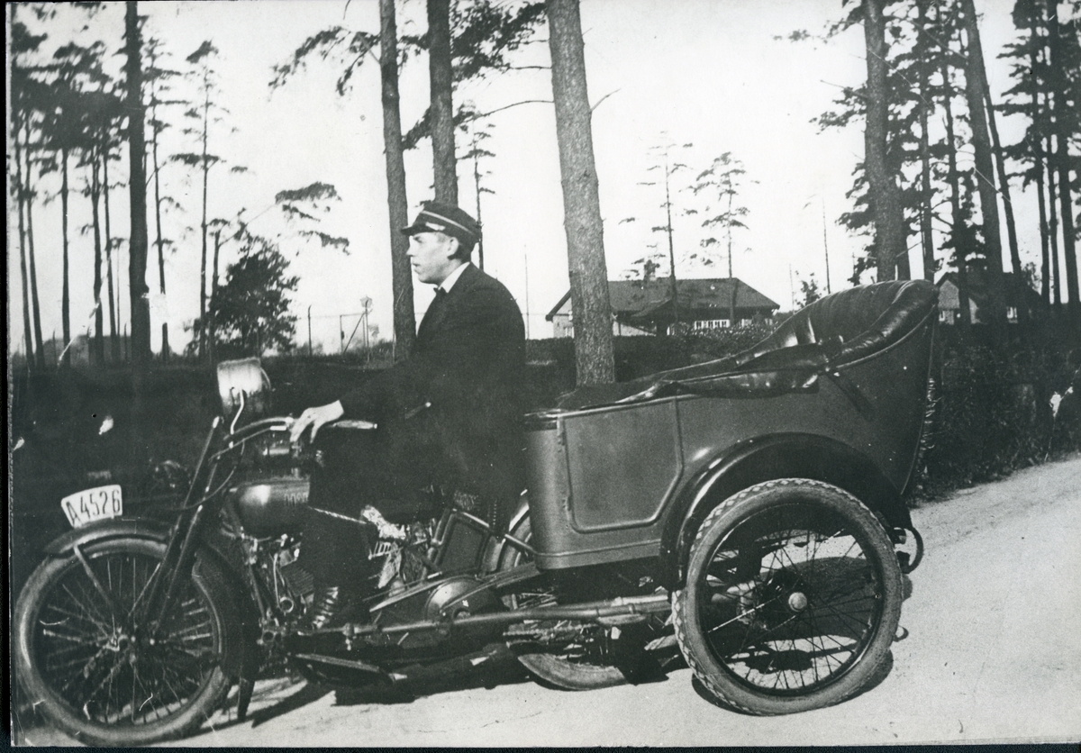 Postverkets trehjuliga motorcykel. 1920-30-tal.