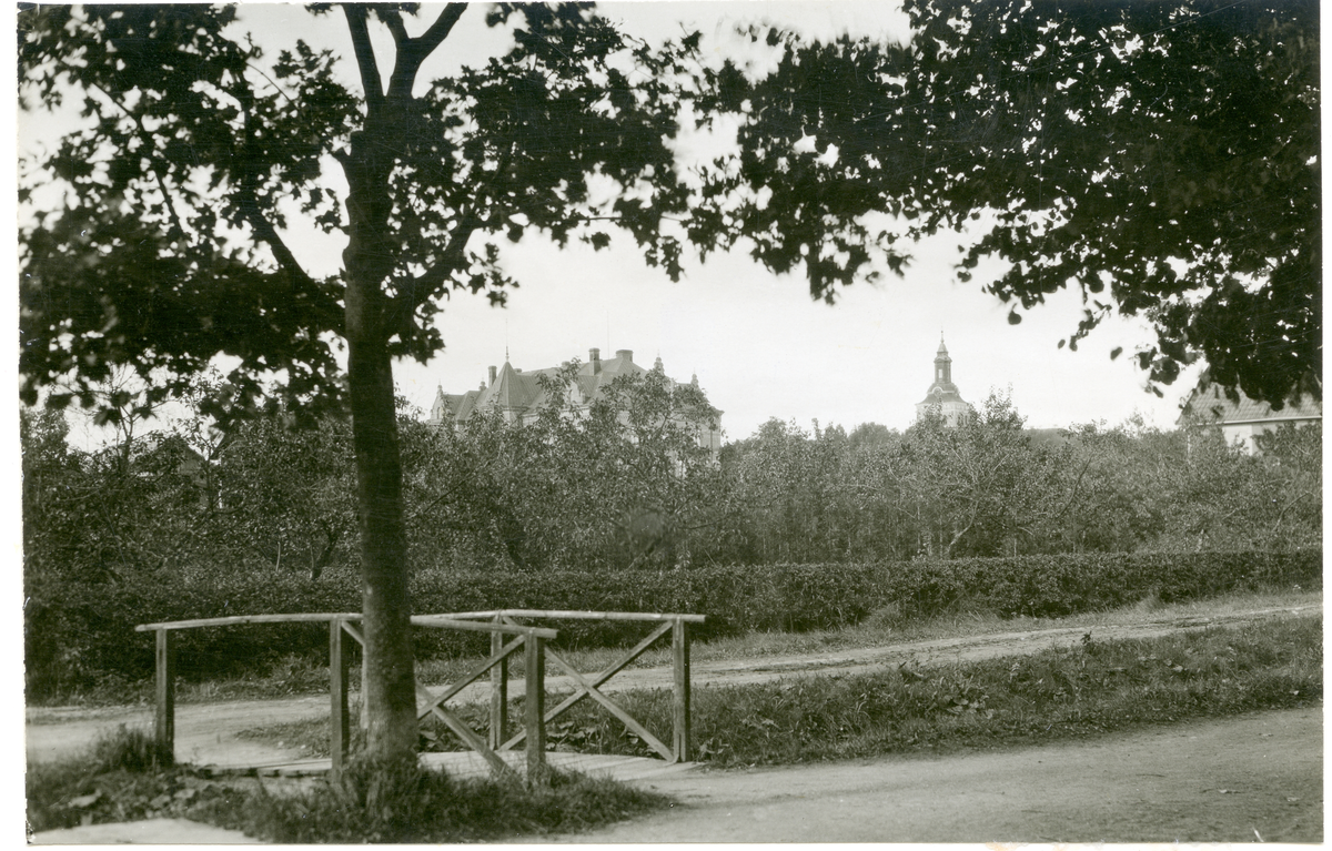 Foto från norr med Kristina kyrka och Vallaskolan i bakgrunden år 1922.