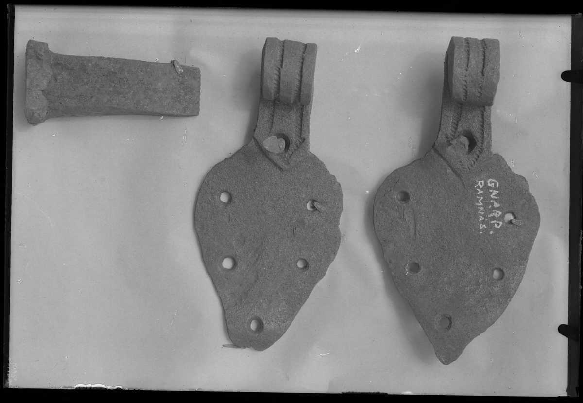 Gångjärnsbeslag jämte ornamentstans. Gnarp, Ramnäs, Västmanland.