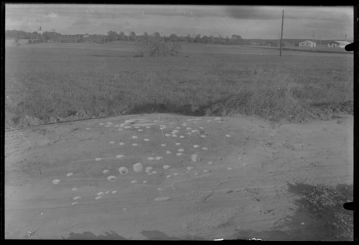 Skålgropar å en berghäll. Broby, Björksta, Västmanland.