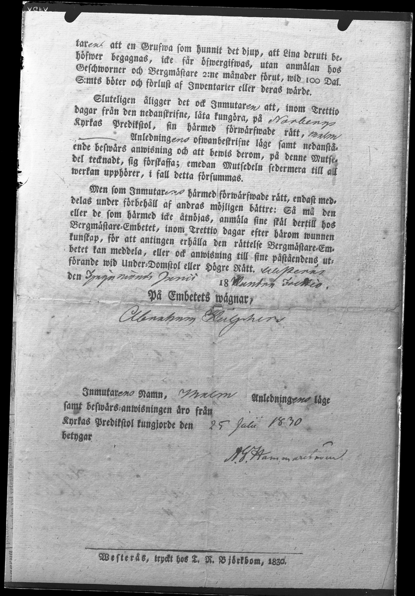Sidan ur en mutsedel, 1830.