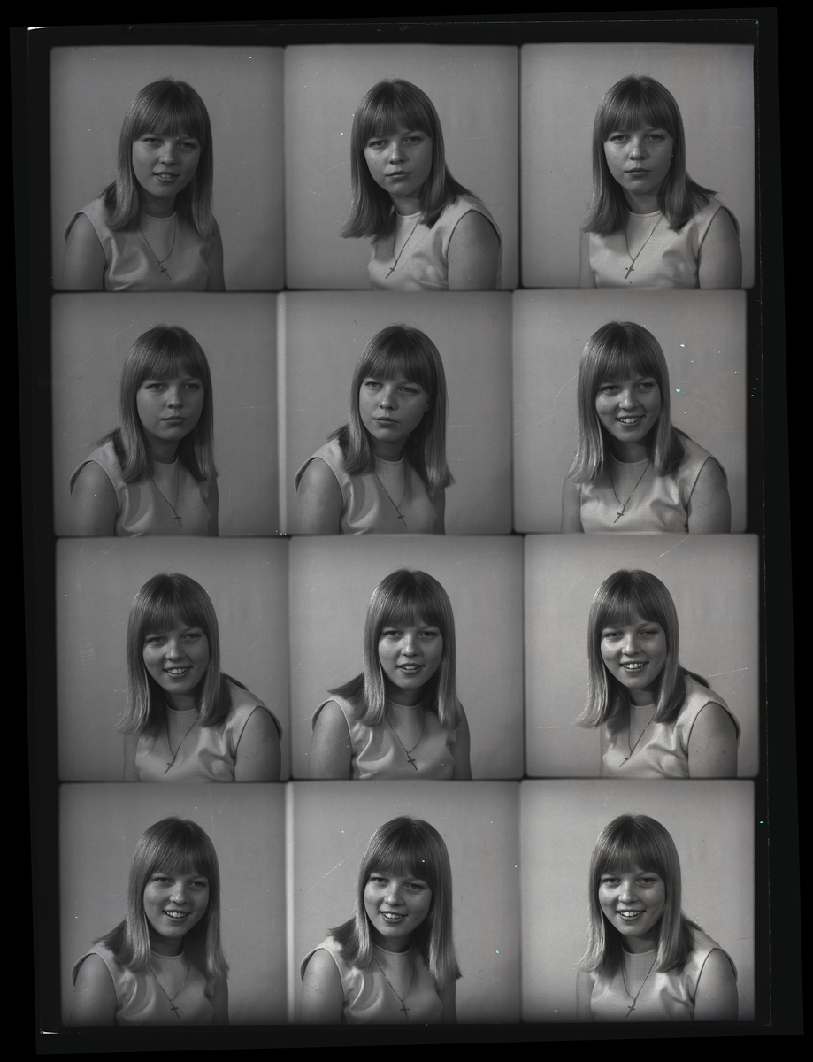 Porträtt, polyfoto. Maj-Britt Johansson. Idrottsvägen 6, Kolbäck. Ur Gustaf Åhmans samling.