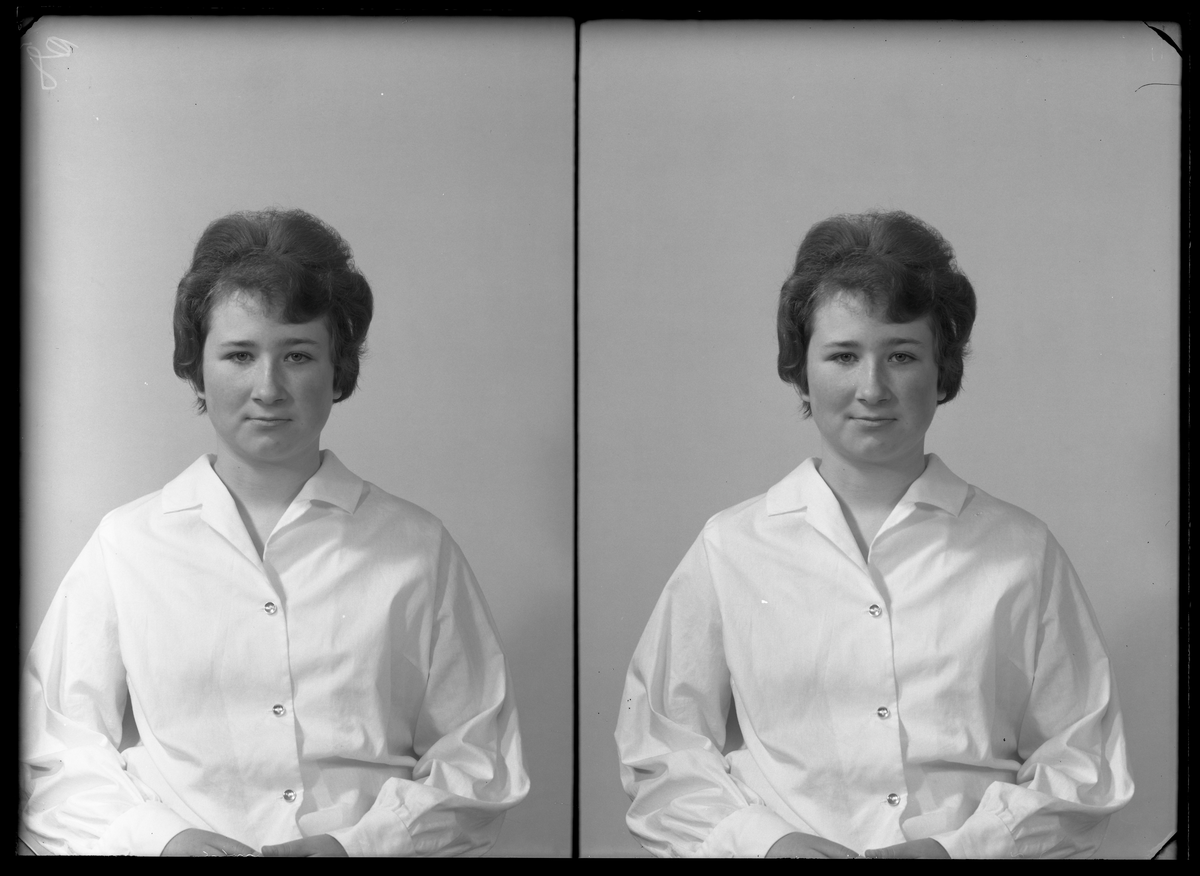 Kvinnoporträtt, pass, Birgitta Eriksson, Vänsta, Kolbäck.