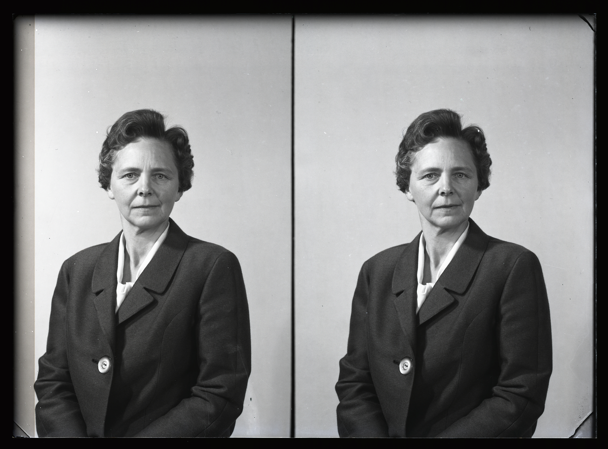 Porträtt, pass, Fru Stina Persson, Hellby, Kolbäck.
