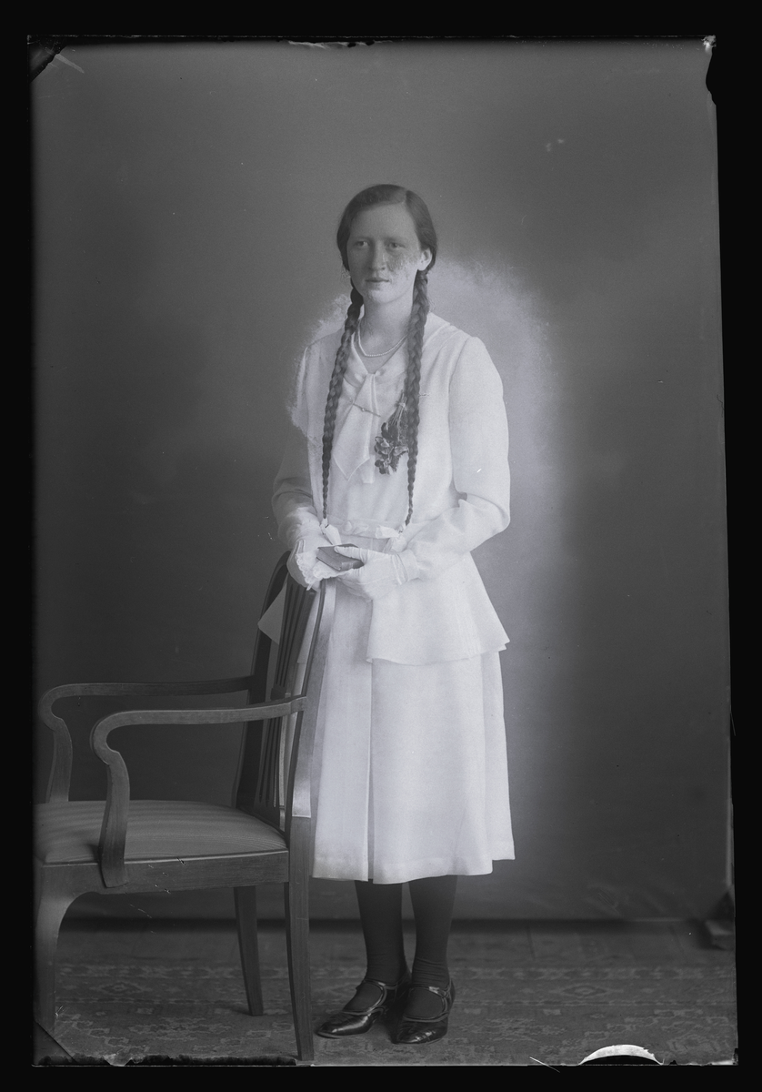 Porträtt, läsfoto. Birgit Jansson, Prästgården.