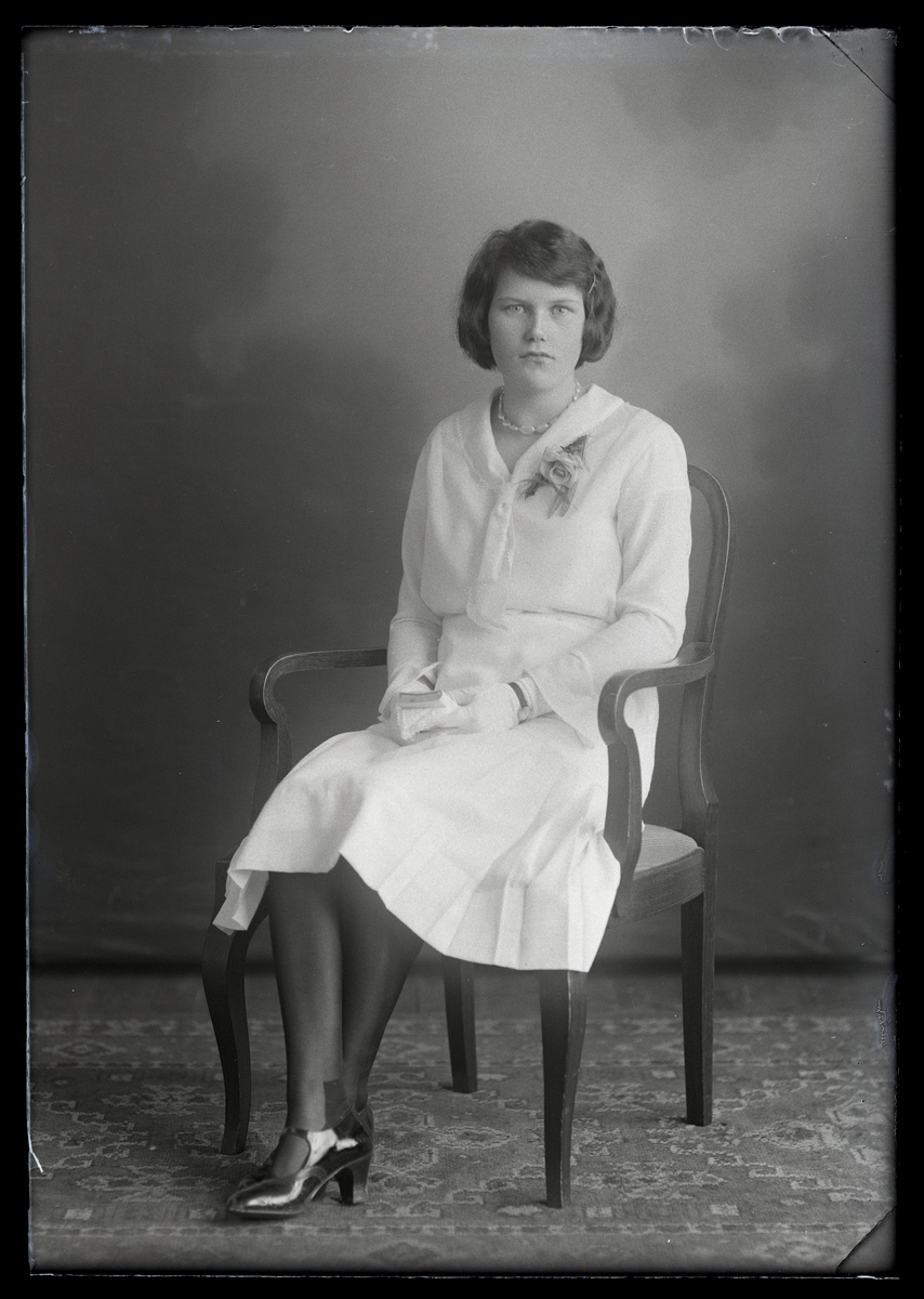 Porträtt, läsfoto. Stina Broström, Sörstafors, Kolbäck.