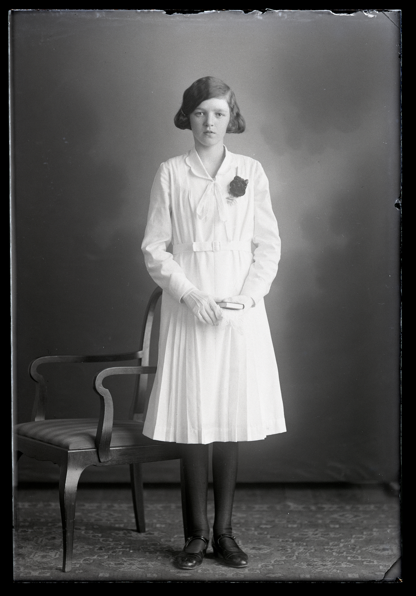 Porträtt, läsfoto. Ruth Sälling, Kolbäck.