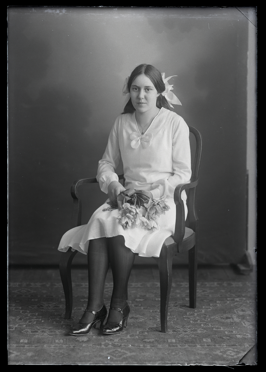 Porträtt, läsfoto. Aina Gartz, Kolbäck.