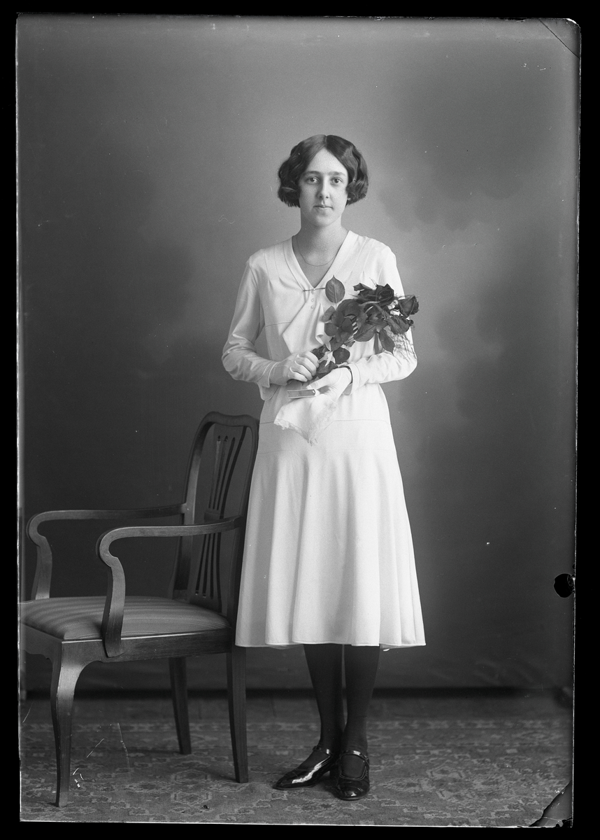 Porträtt, läsfoto. Alice Johansson, Herrevad, Kolbäck.