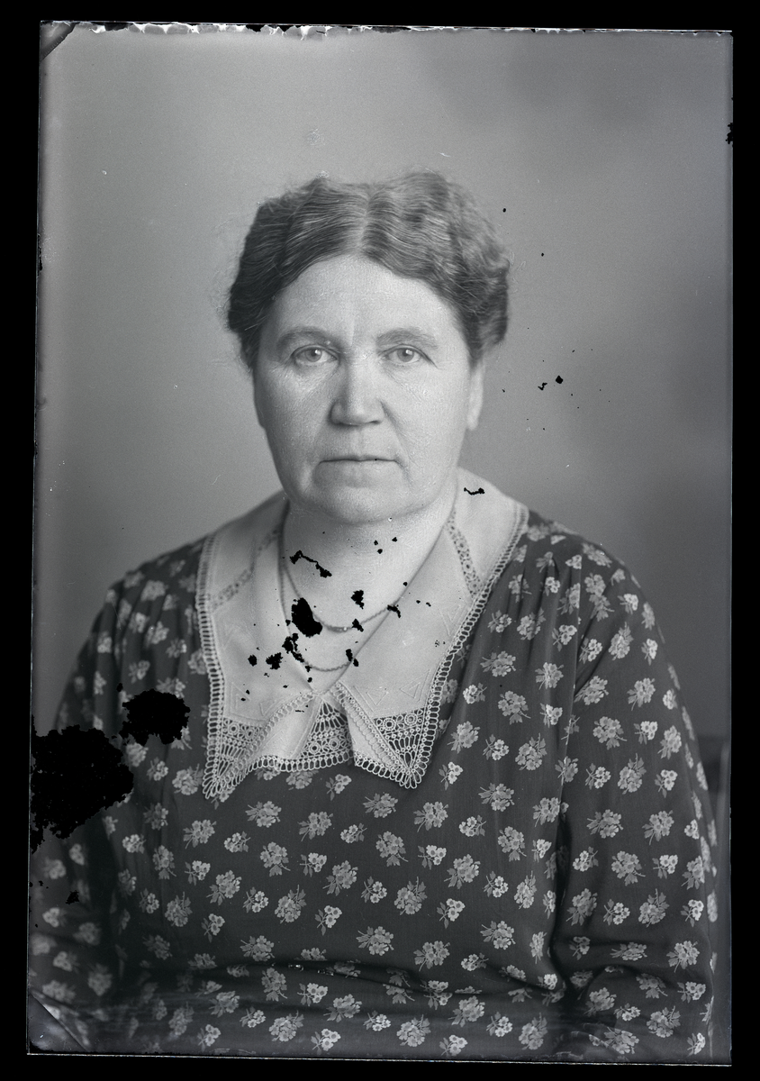Kvinnoporträtt. Fru Hedvig Karlsson, Trollebo 151, Hallstahammar.