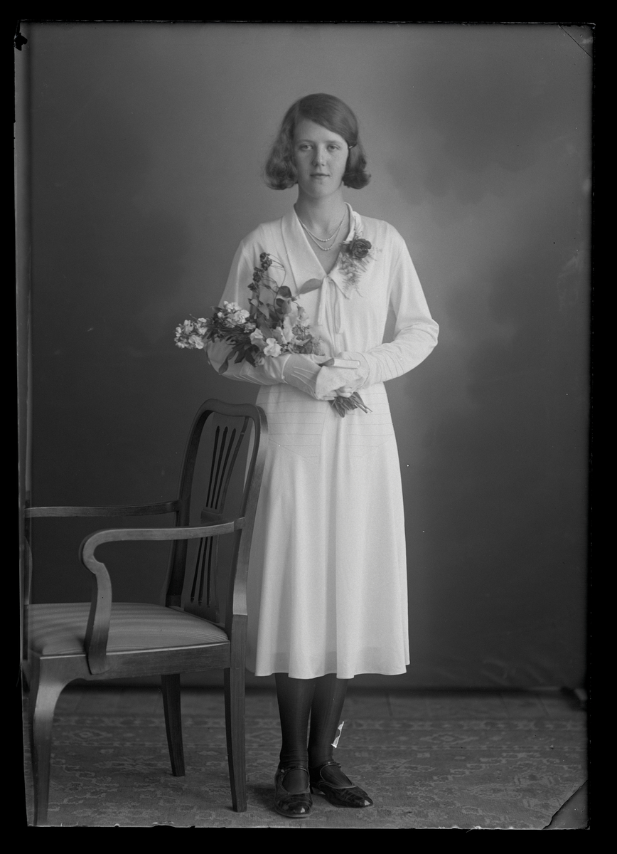 Porträtt, läsfoto. Iris Eriksson, Tomtebo, Hallstahammar.