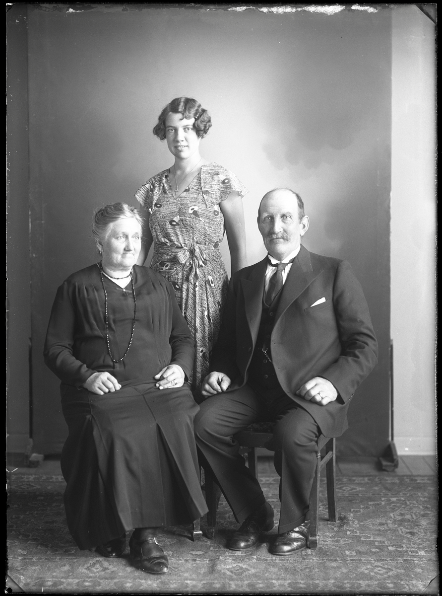 Grupporträtt, tre personer. Sigfrid Björkman, Kolbäck.