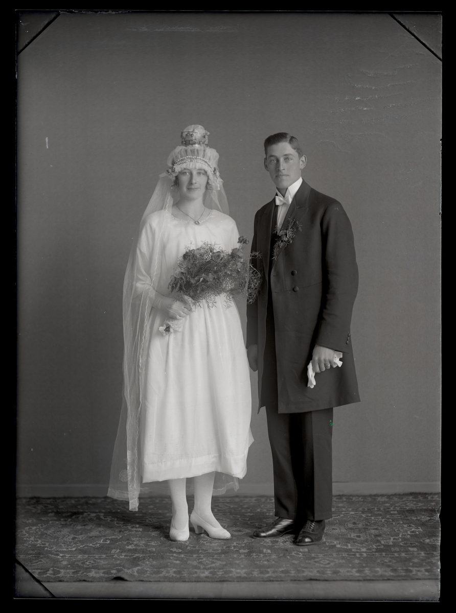 Titel: Brudpar, Larsson Anna, Sörstafors. Ur Gustaf Åhmans samling.