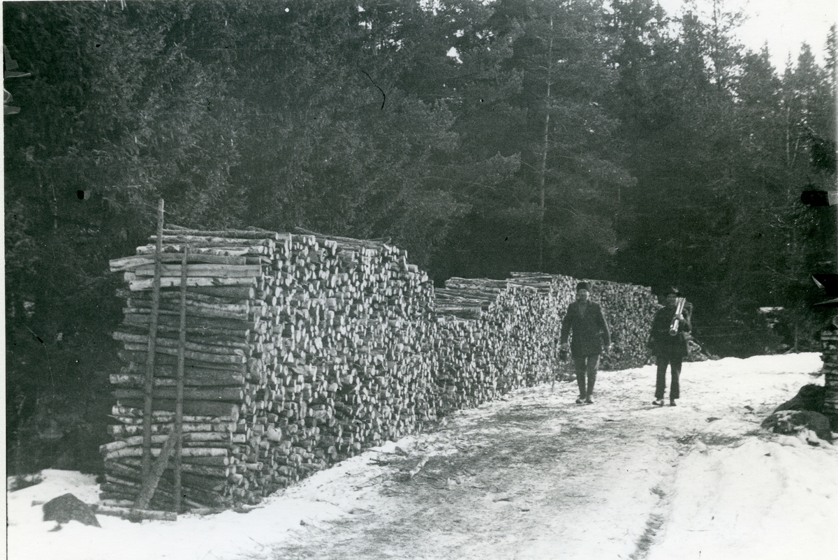 Storön. "På väg till Storön år 1935". Stapel med avverkad skog.