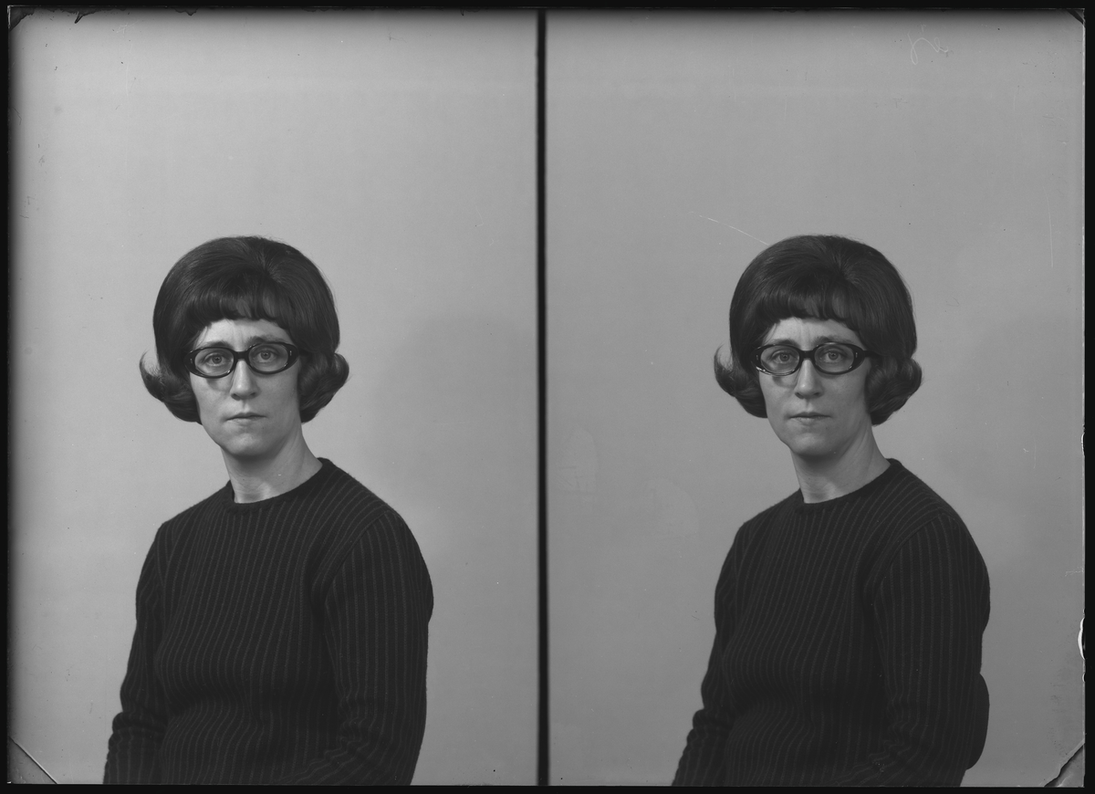 Kvinnoporträtt, körfoto. Britta Becker, Ängsv. 12, Kolbäck. Ur Gustaf Åhmans samling.