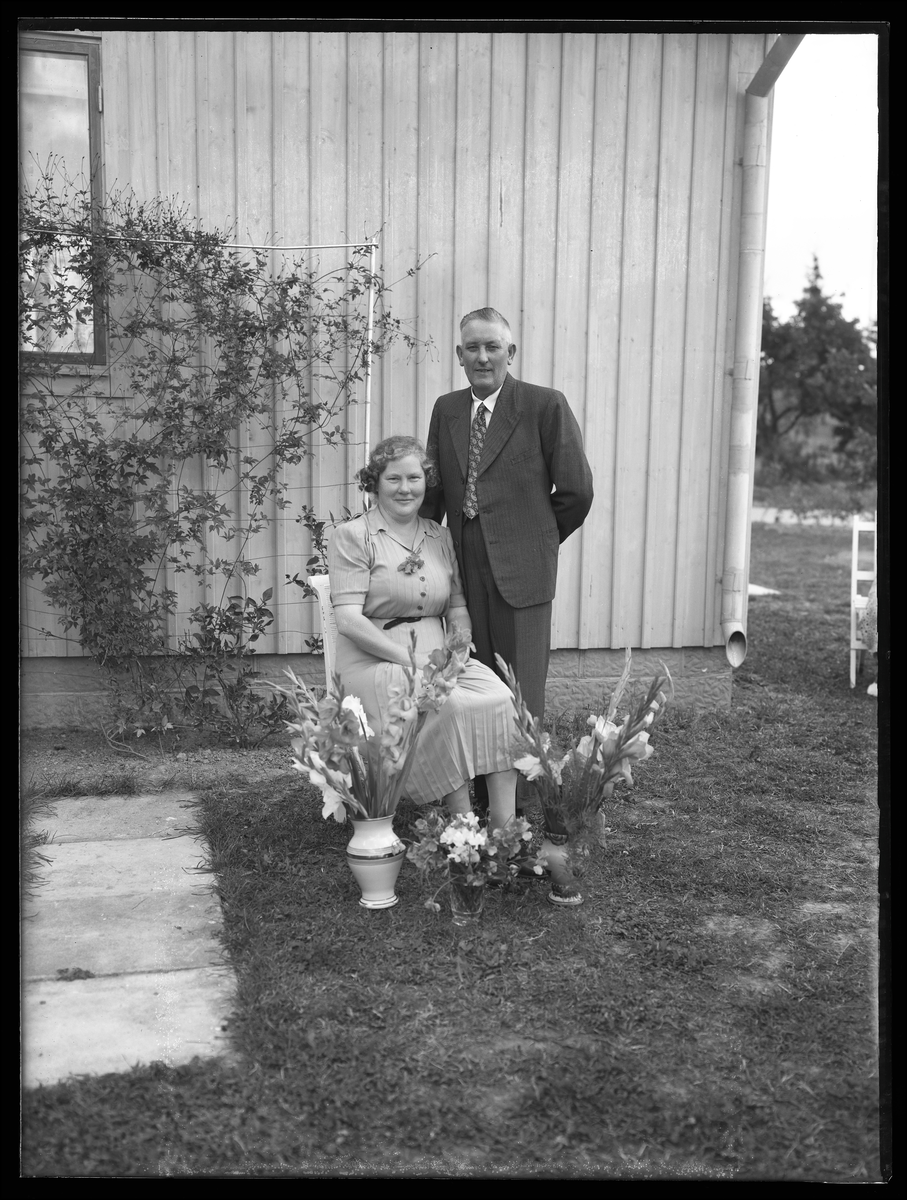 Grupporträtt, två personer. Fru Hellström, Herrevad.