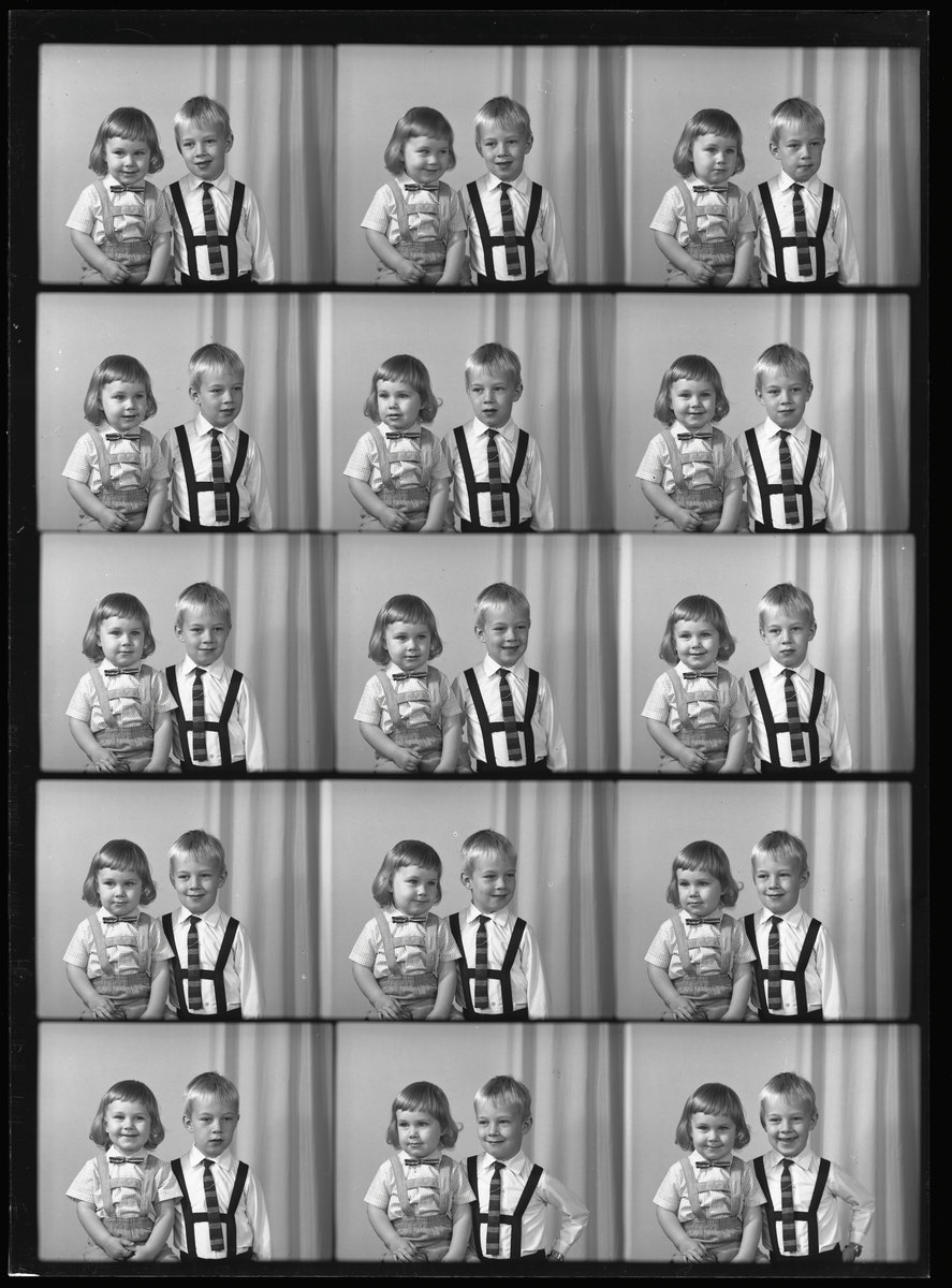Grupporträtt, två barn. Fru Birgitta Pettersson, Äggsjögatan 6B, Kolbäck.